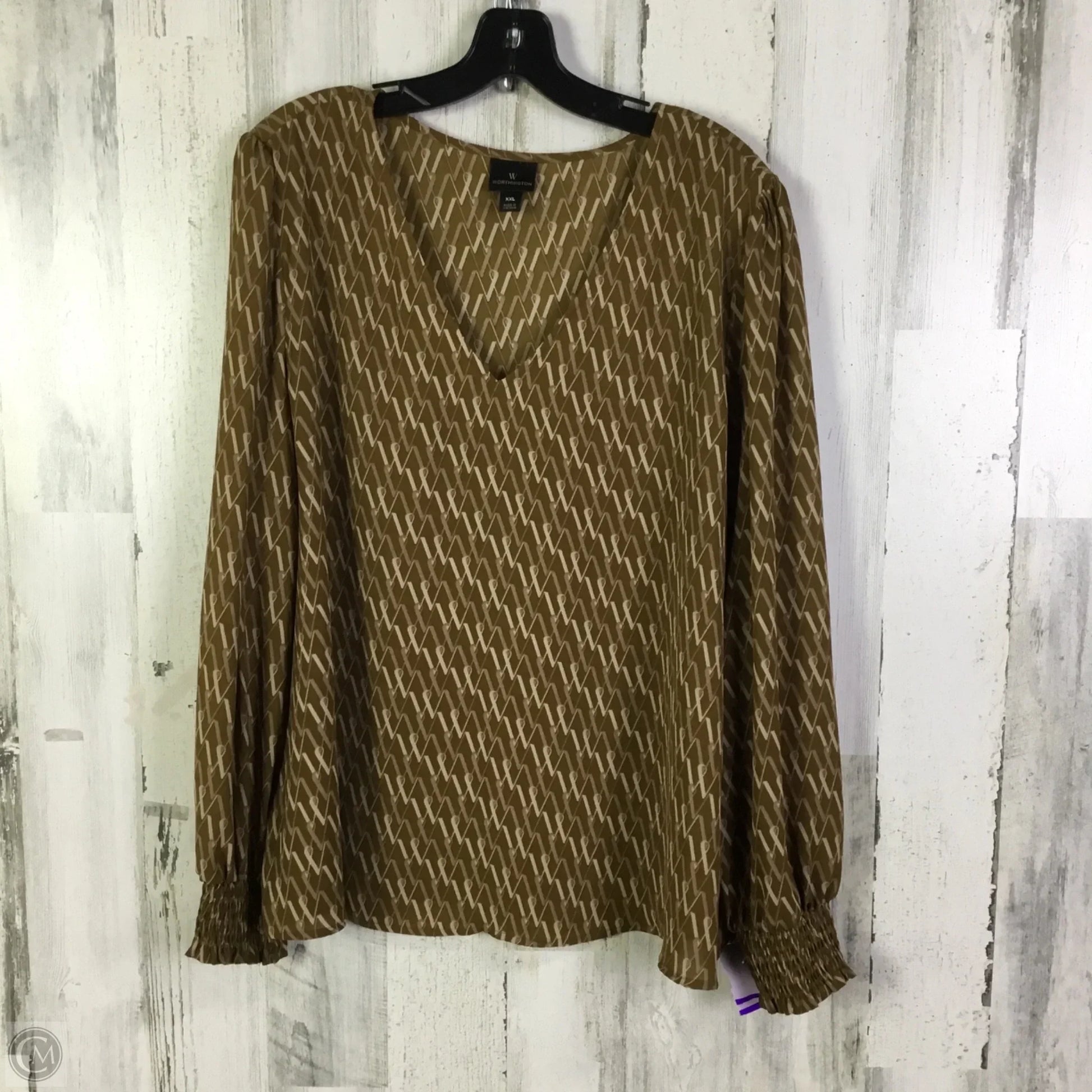 Blouse 3/4 Sleeve By Worthington In Tan, Size: Xxl