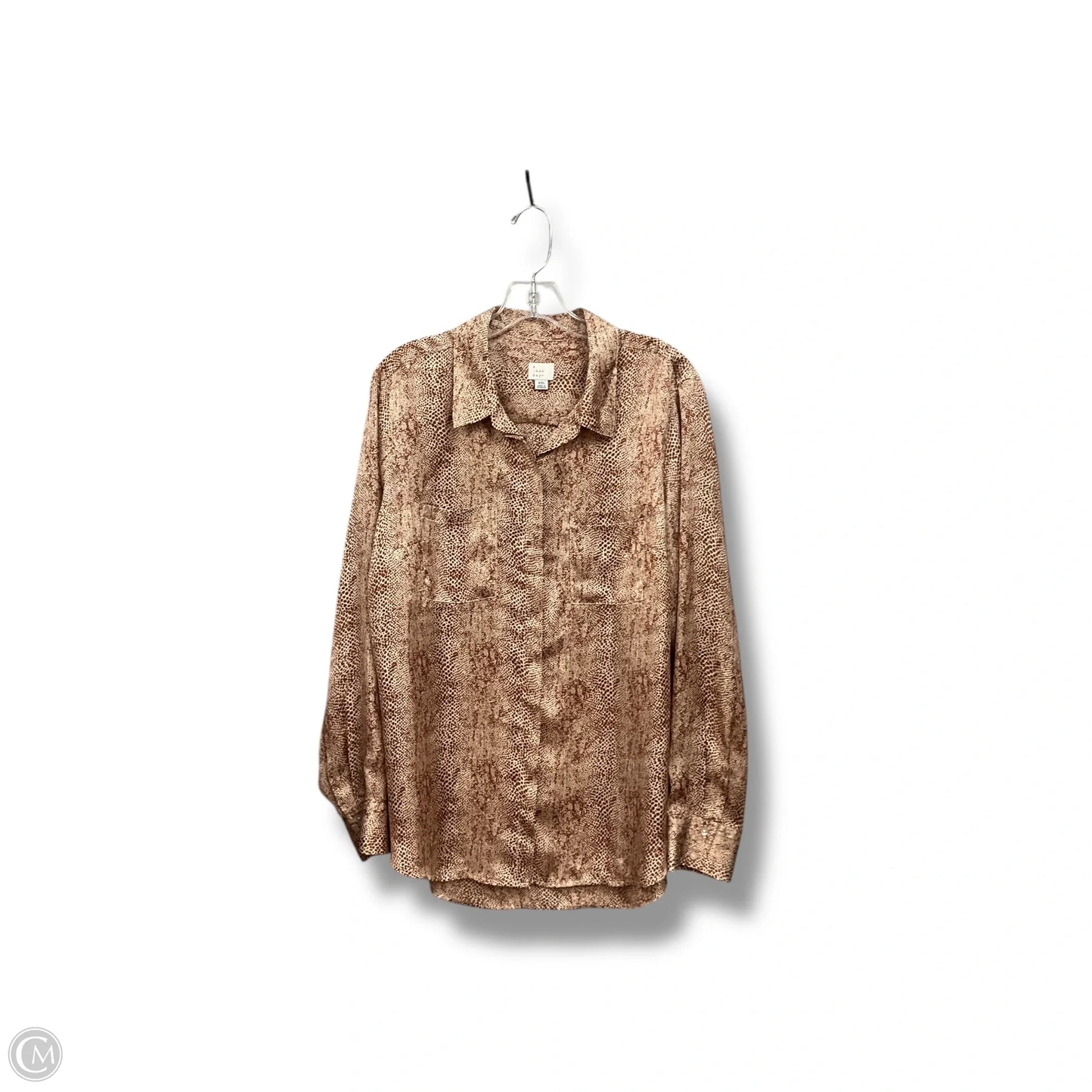 Blouse Long Sleeve By A New Day In Snakeskin Print, Size: Xxl