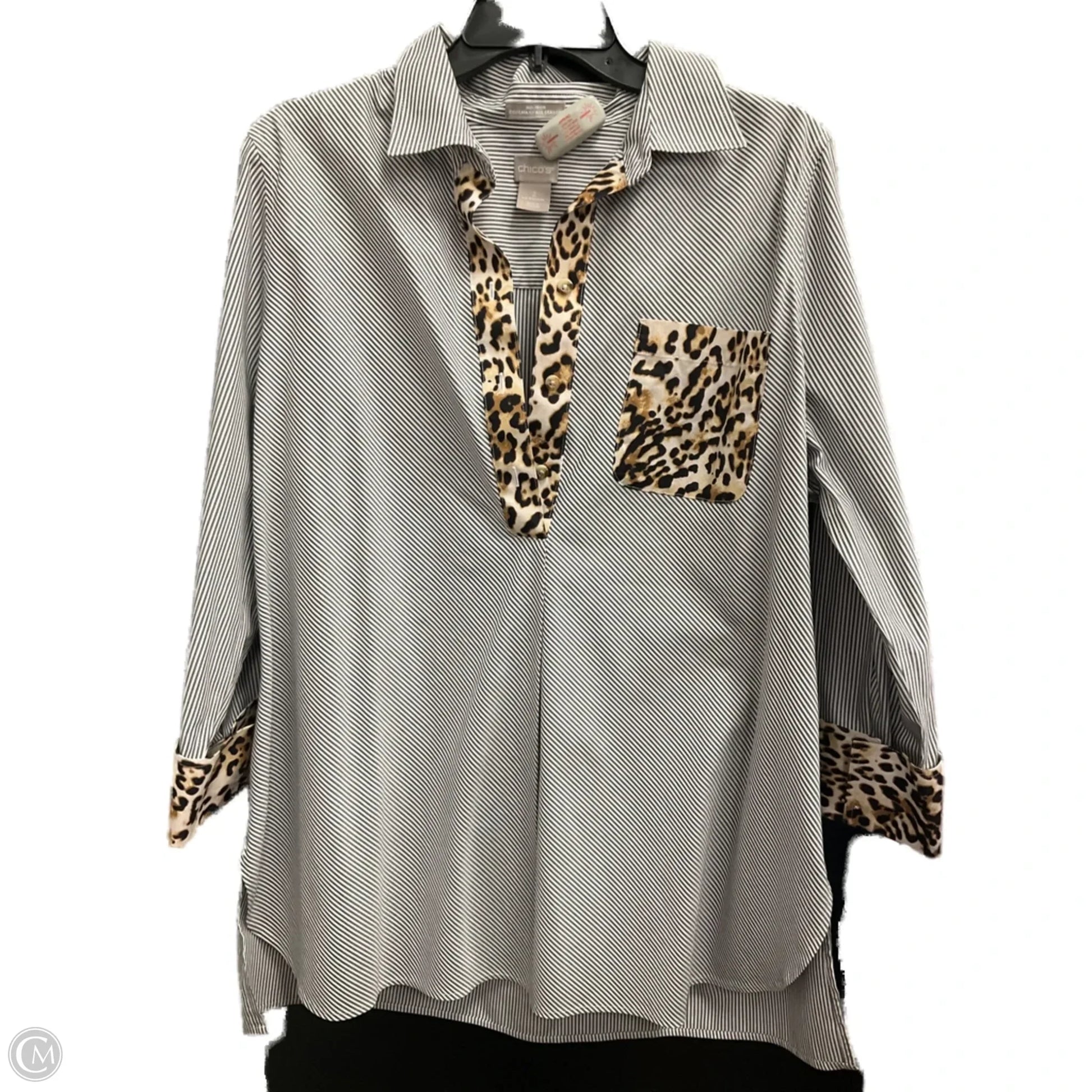 Blouse Long Sleeve By Chicos In Striped Pattern, Size: L