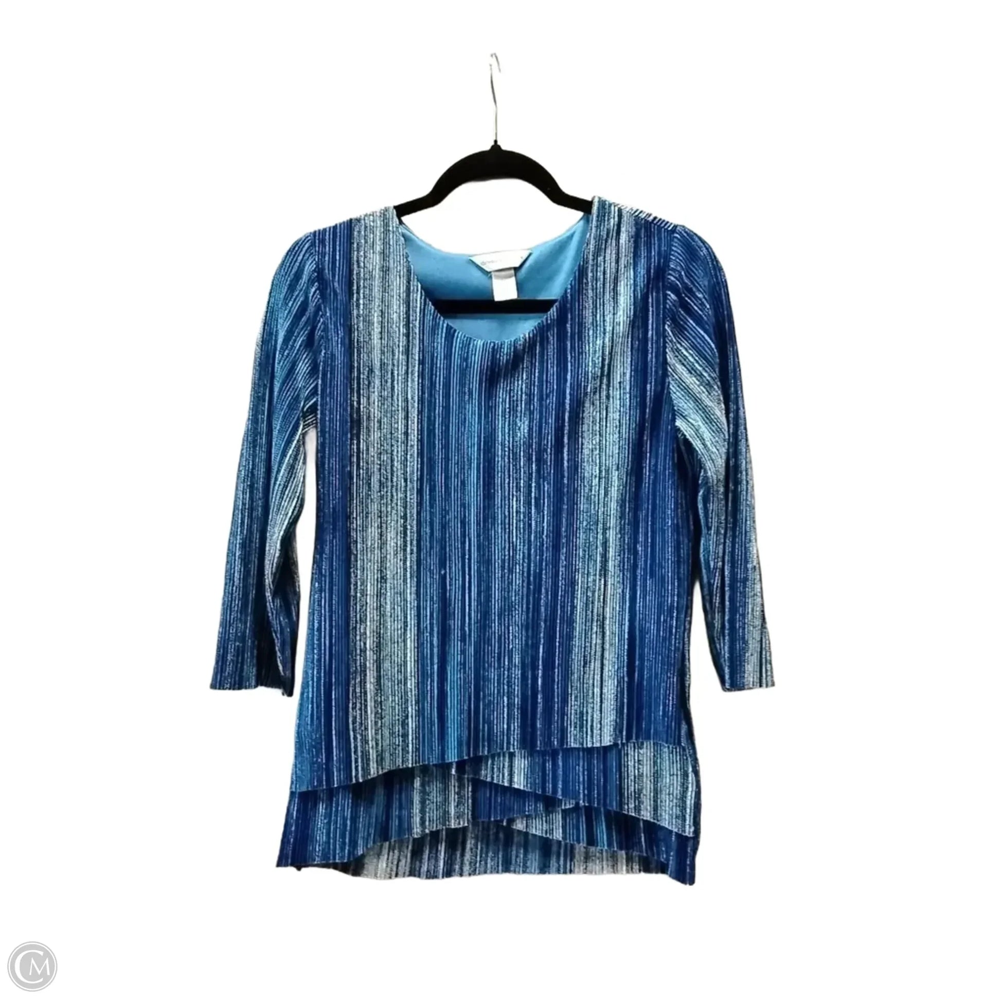 Blouse Long Sleeve By Christopher And Banks In Blue & Cream, Size: M