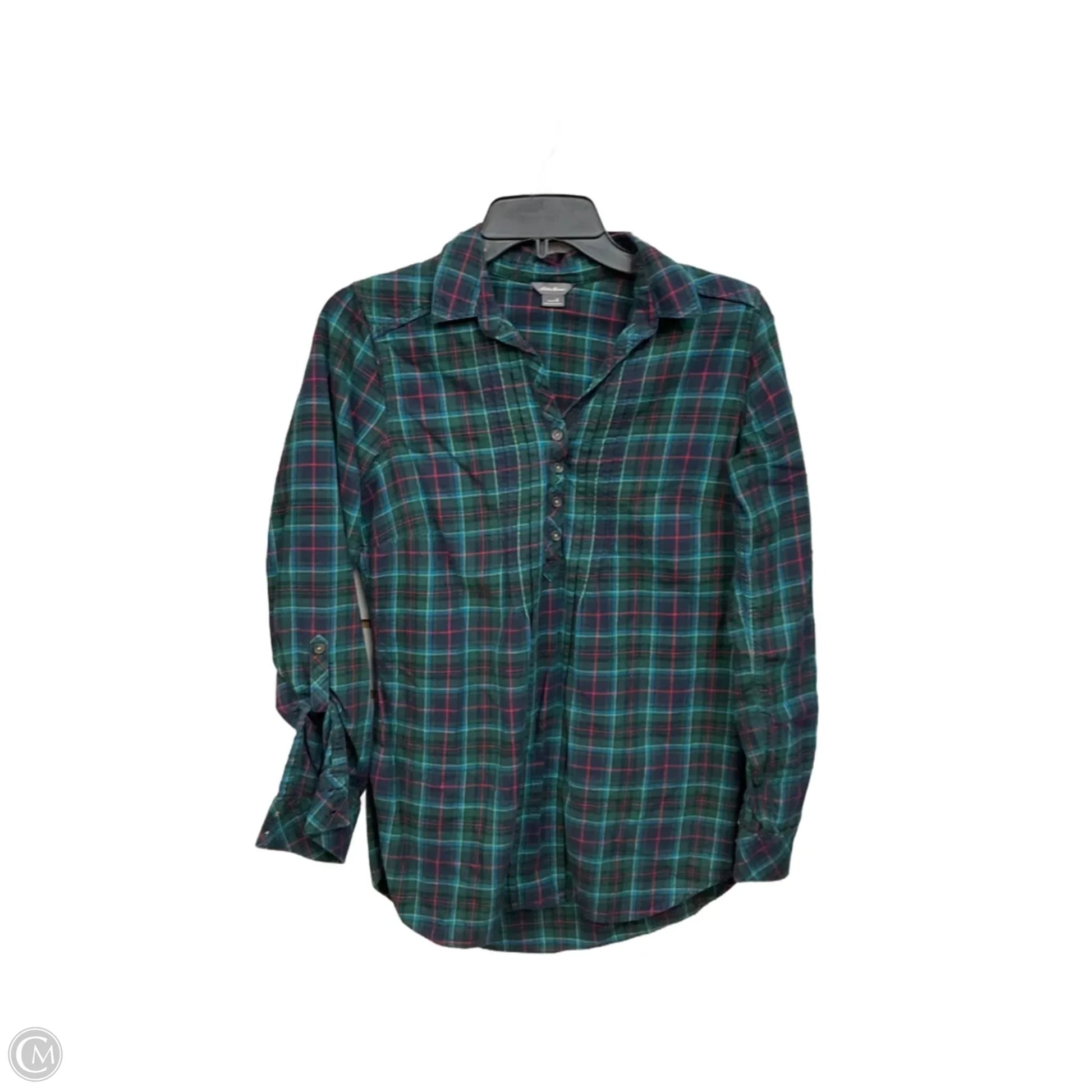 Blouse Long Sleeve By Eddie Bauer In Plaid Pattern, Size: S