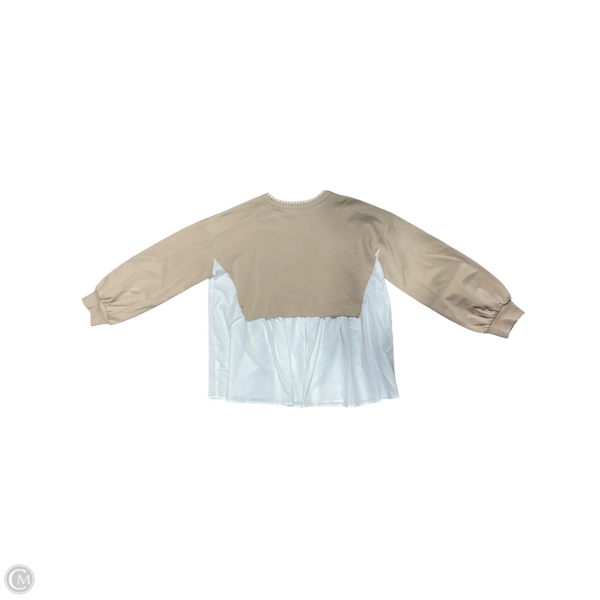 Blouse Long Sleeve By Entro In Tan & White, Size: L