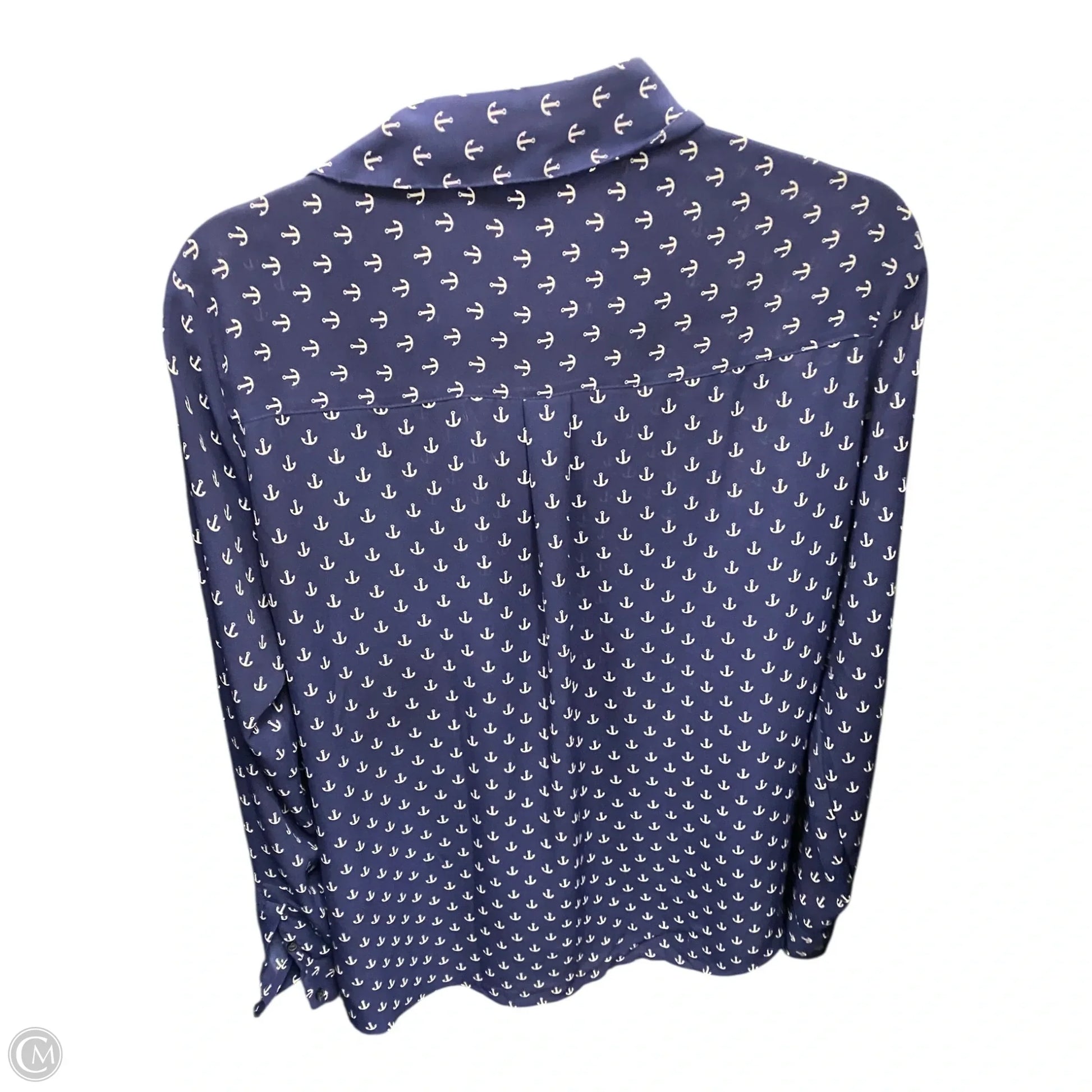 Blouse Long Sleeve By Express In Blue & White, Size: L