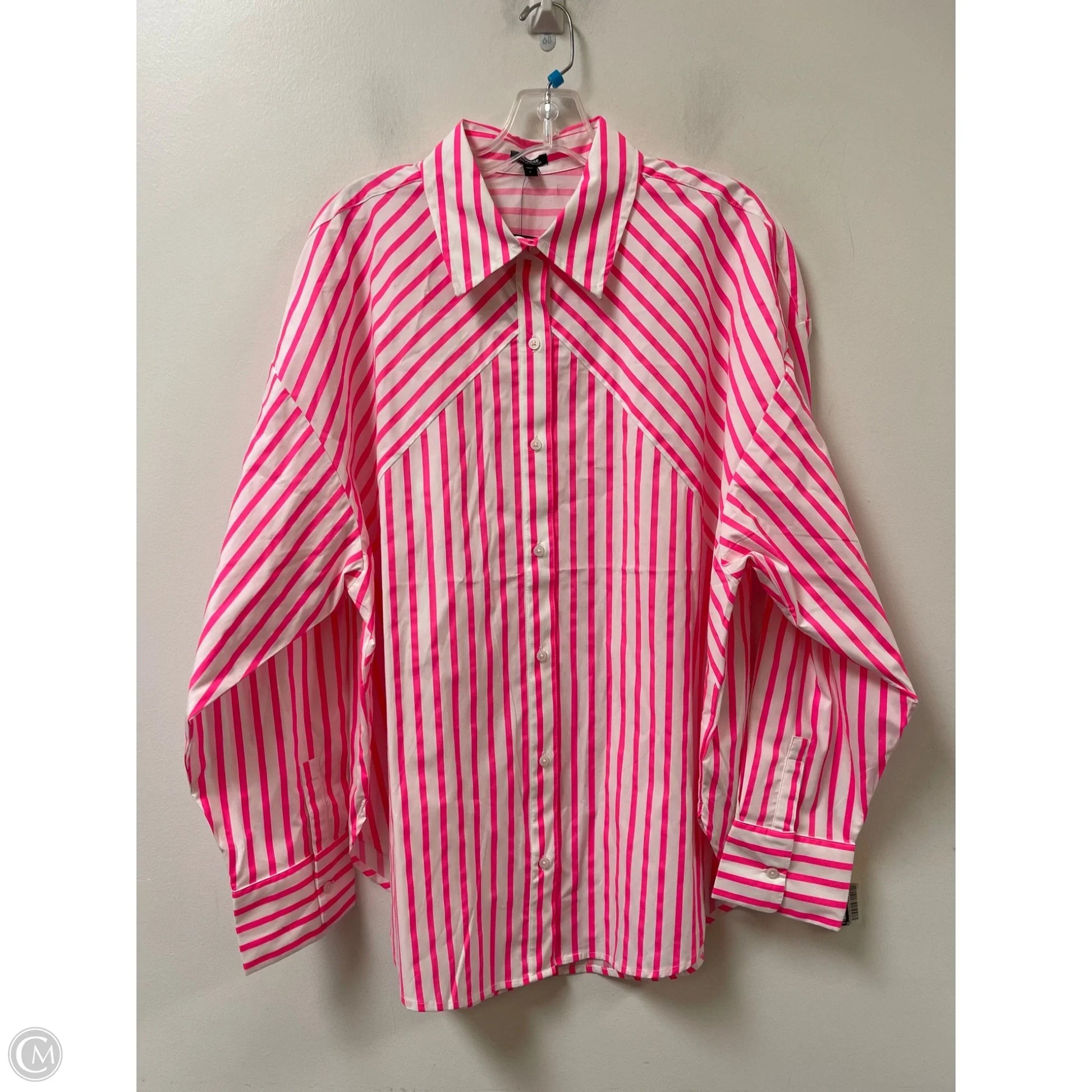 Blouse Long Sleeve By Express In Pink & White, Size: L