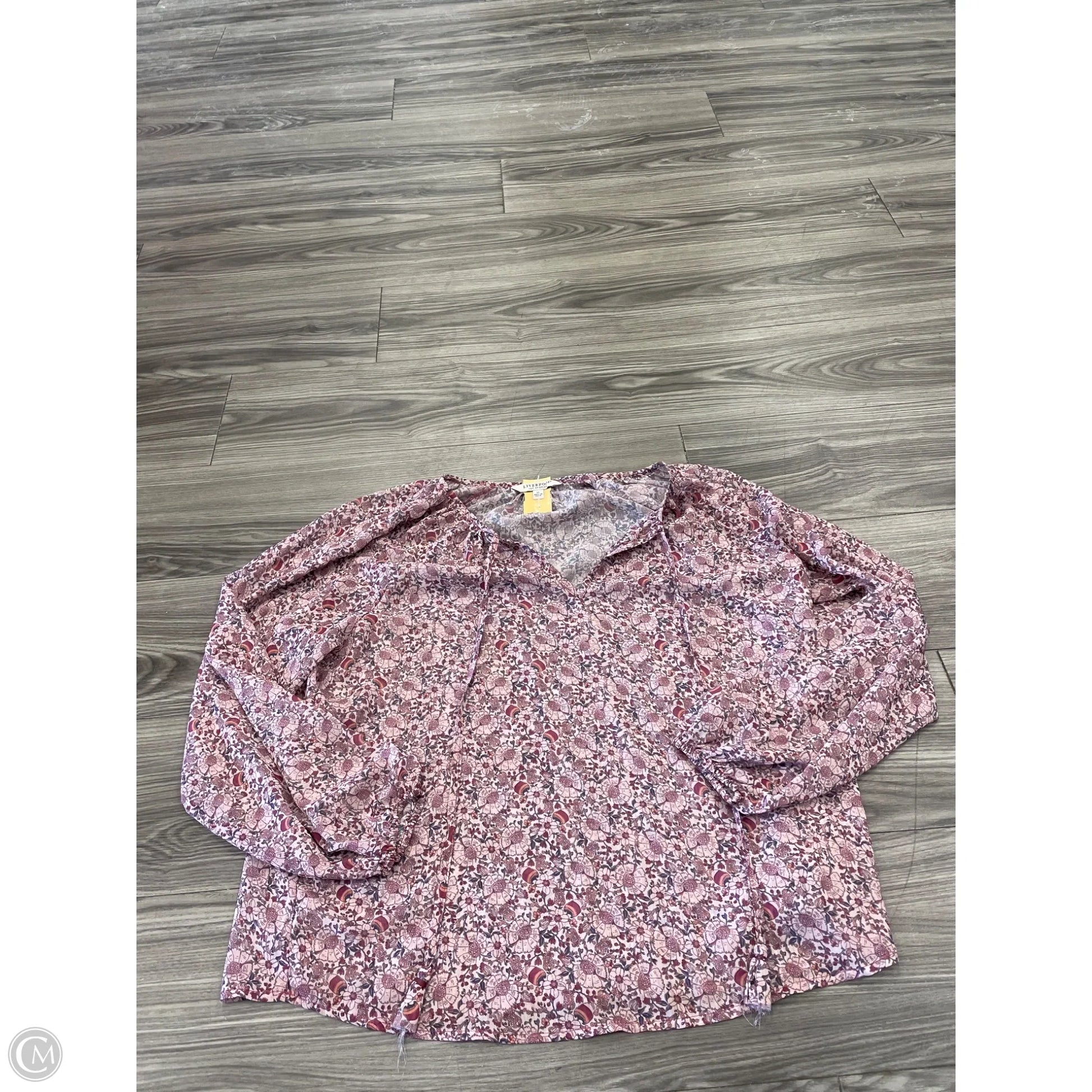 Blouse Long Sleeve By Liverpool In Floral Print, Size: M