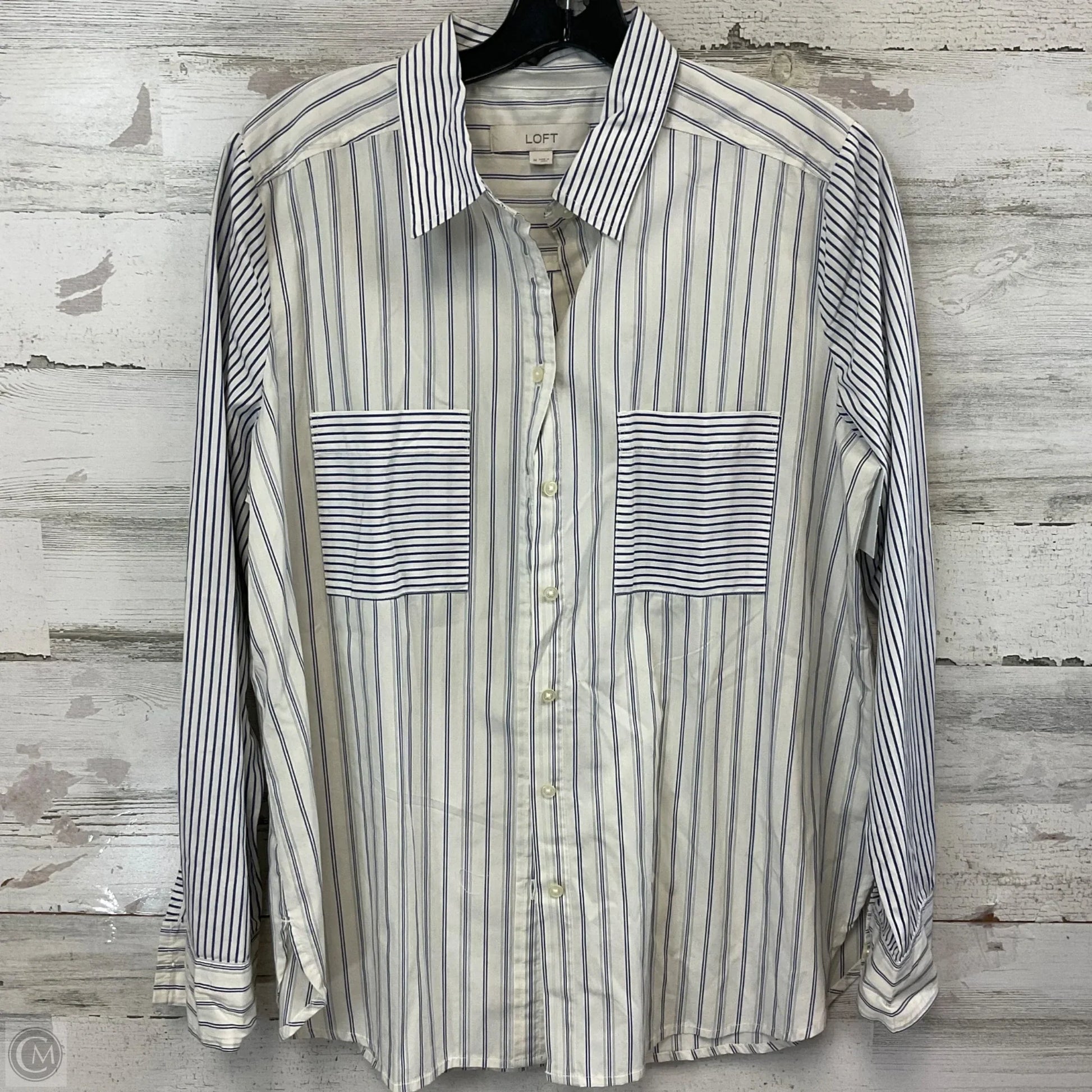 Blouse Long Sleeve By Loft In Blue & White, Size: M