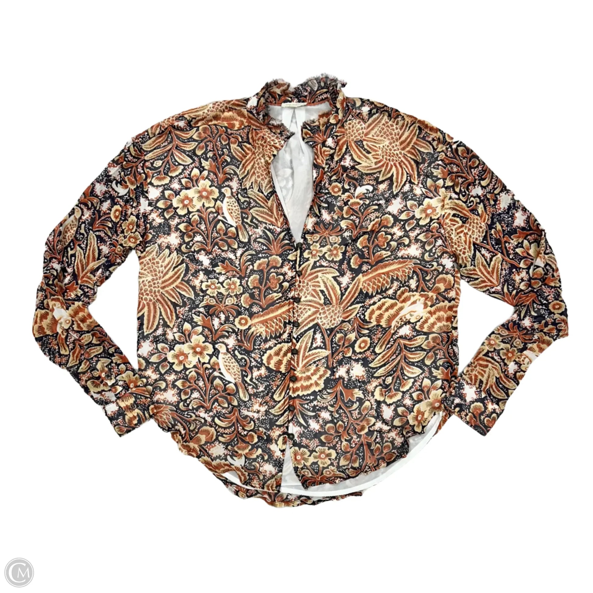 Blouse Long Sleeve By Pilcro In Blue & Orange, Size: Xs