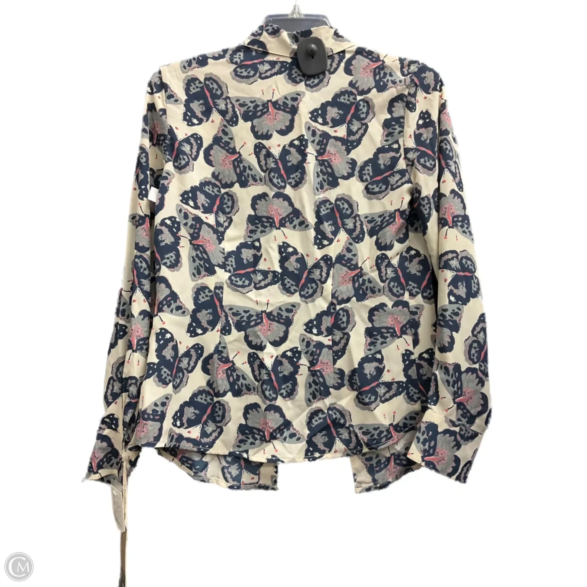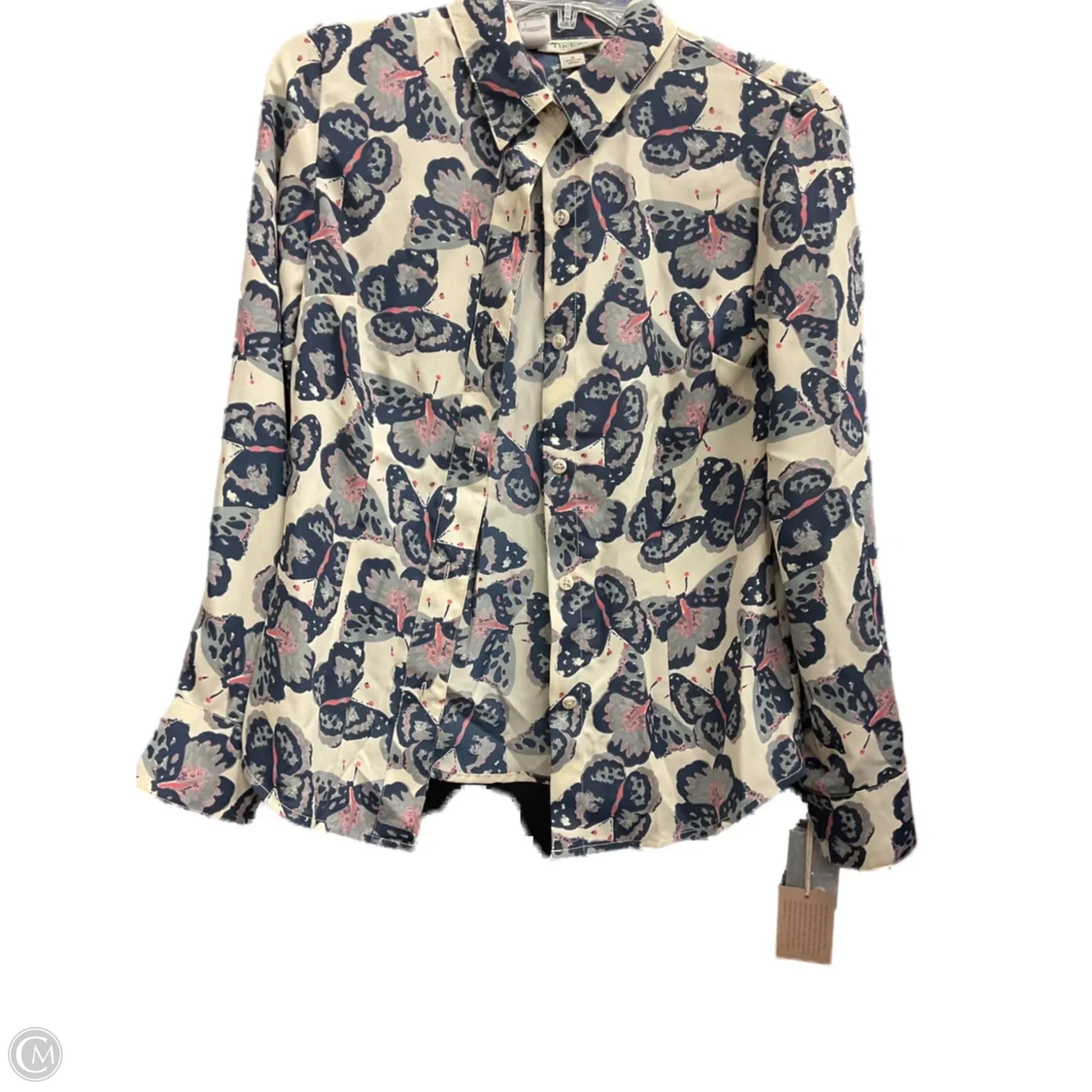 Blouse Long Sleeve By Tucker In Blue & Cream, Size: S