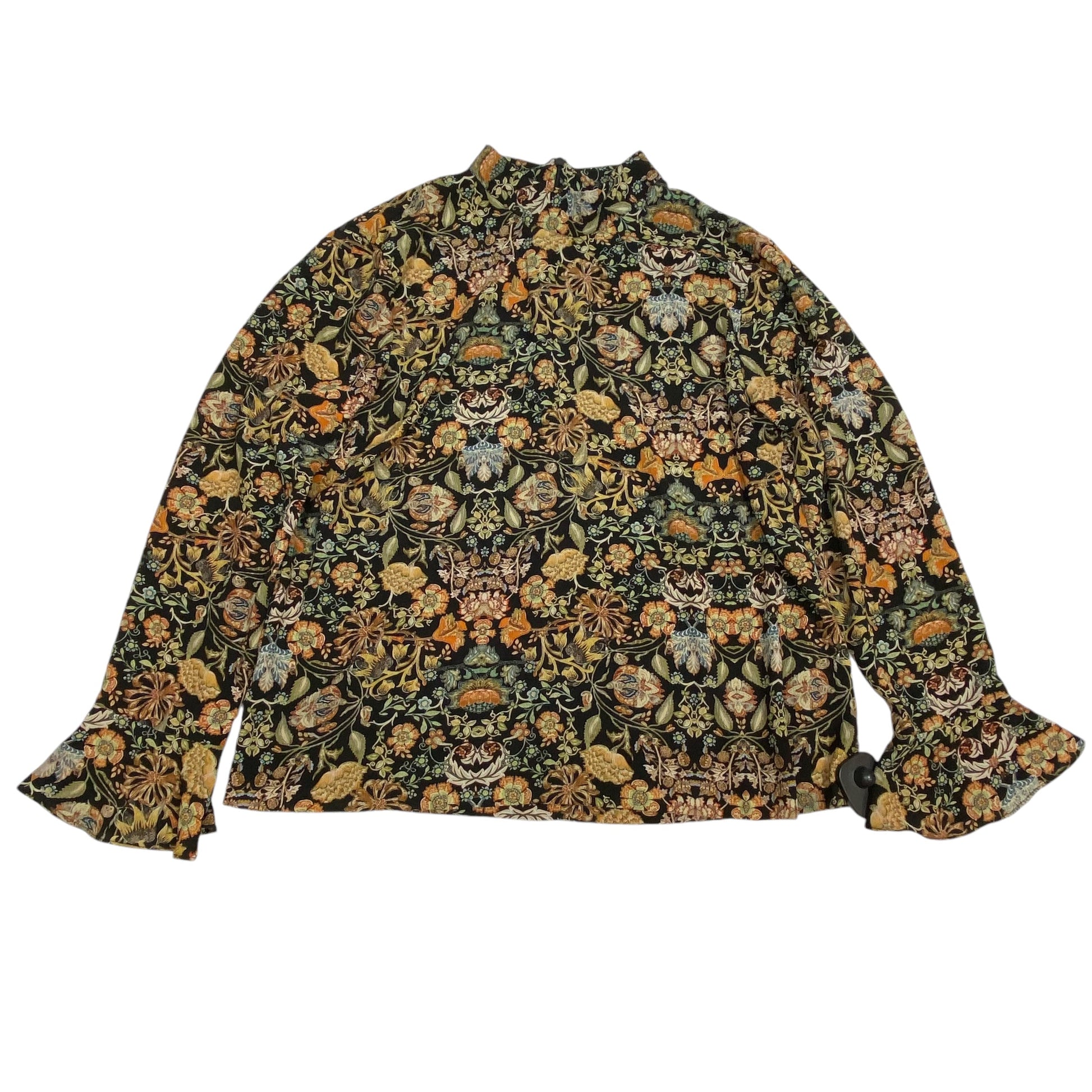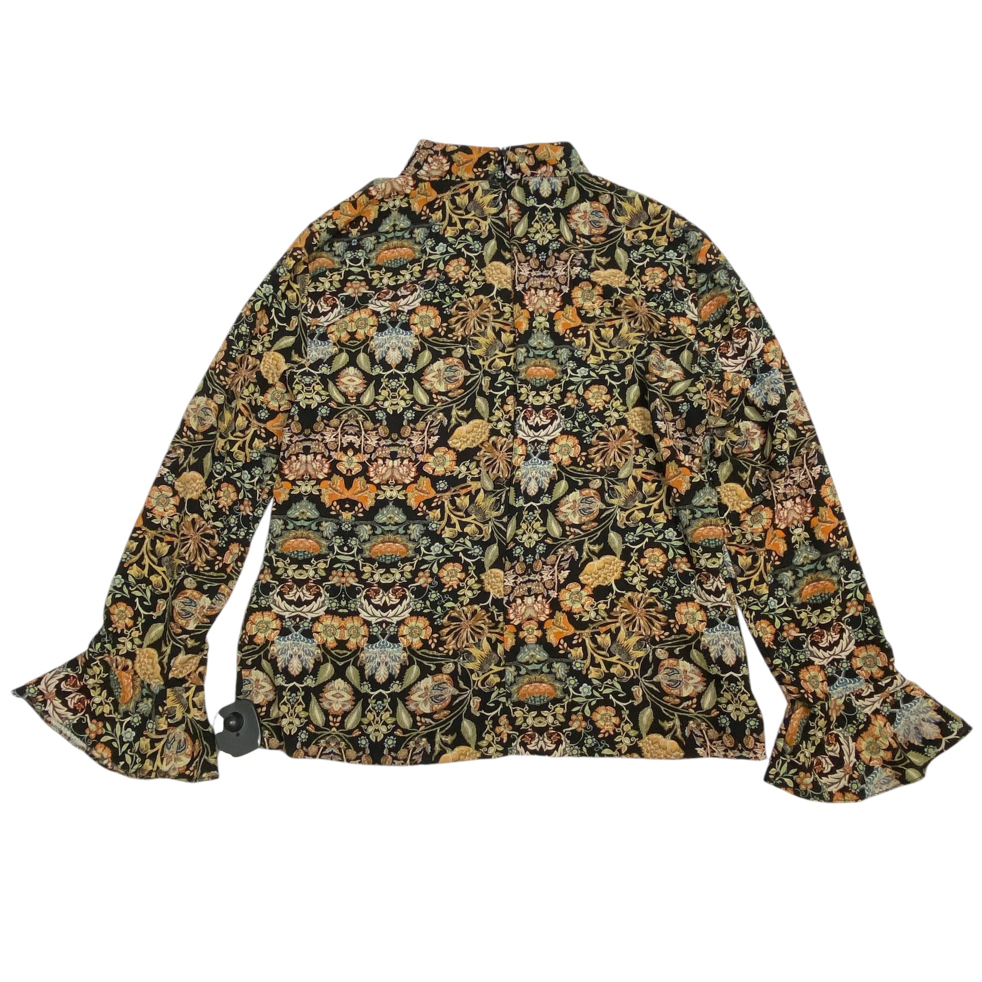 Blouse Long Sleeve By Zara In Black & Orange, Size: L