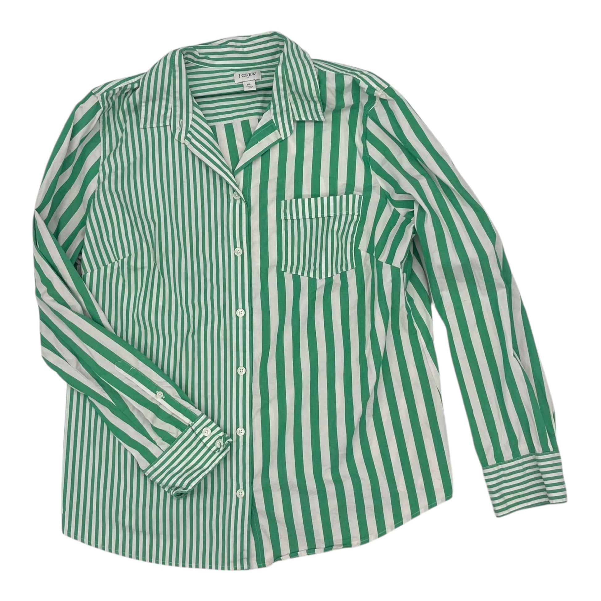 Blouse Ls By J. Crew In Green & White, Size:Xl