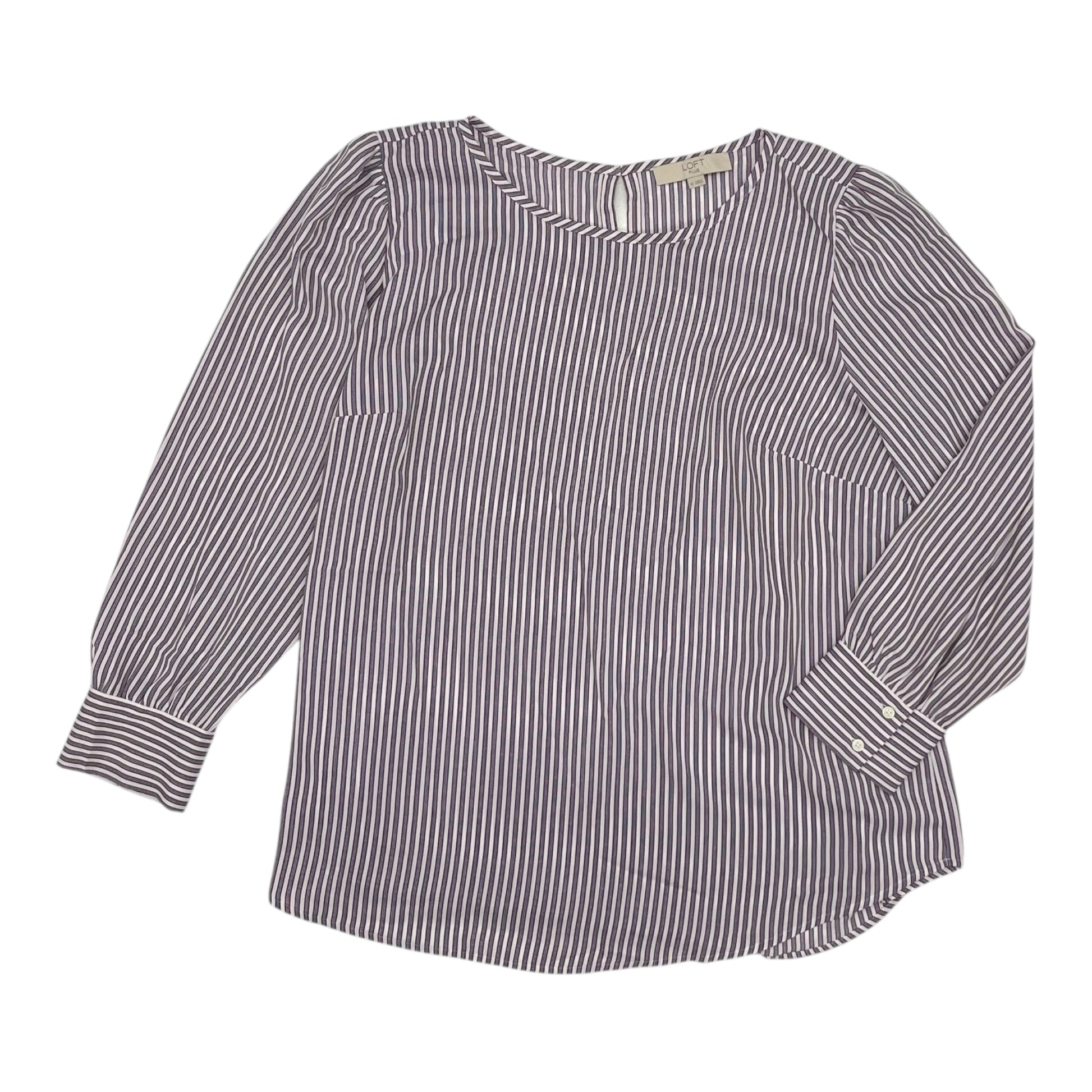 Blouse Ls By Loft In Striped Pattern, Size:1X