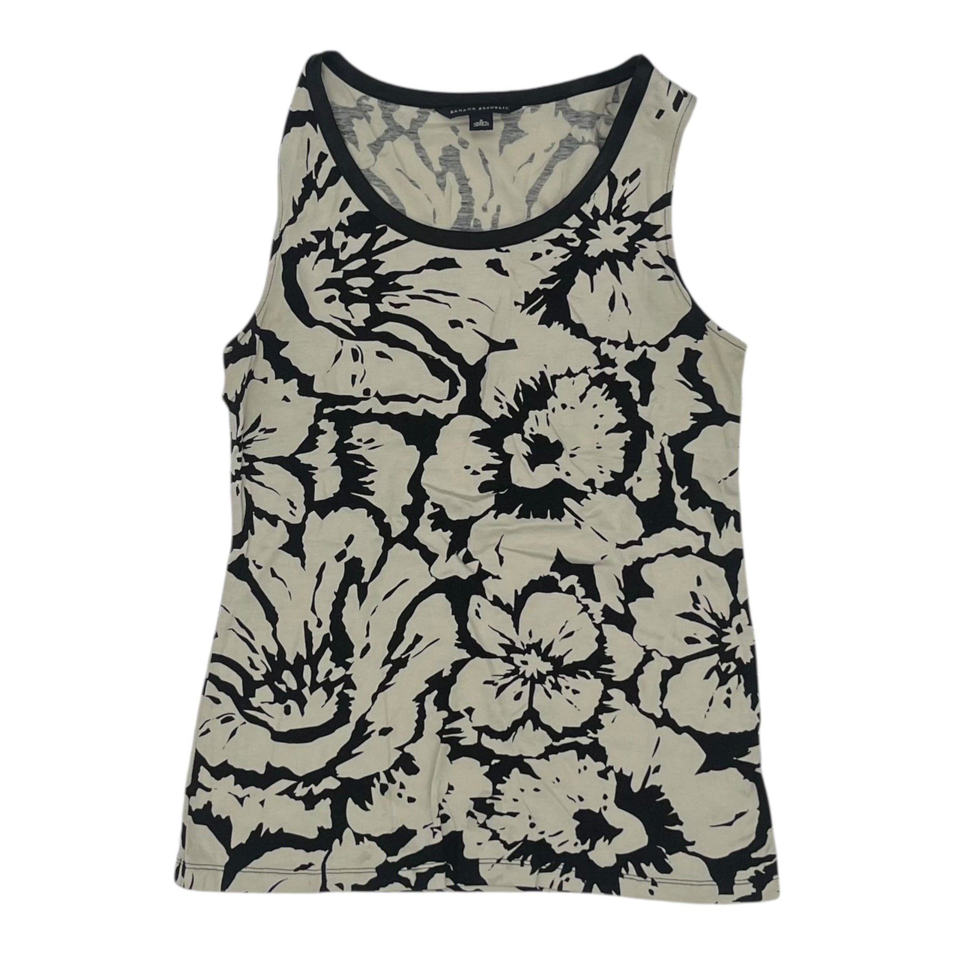 Exude timeless sophistication in this black and tan sleeveless blouse from Banana Republic. Crafted with quality fabric for a flattering fit. Size: S.