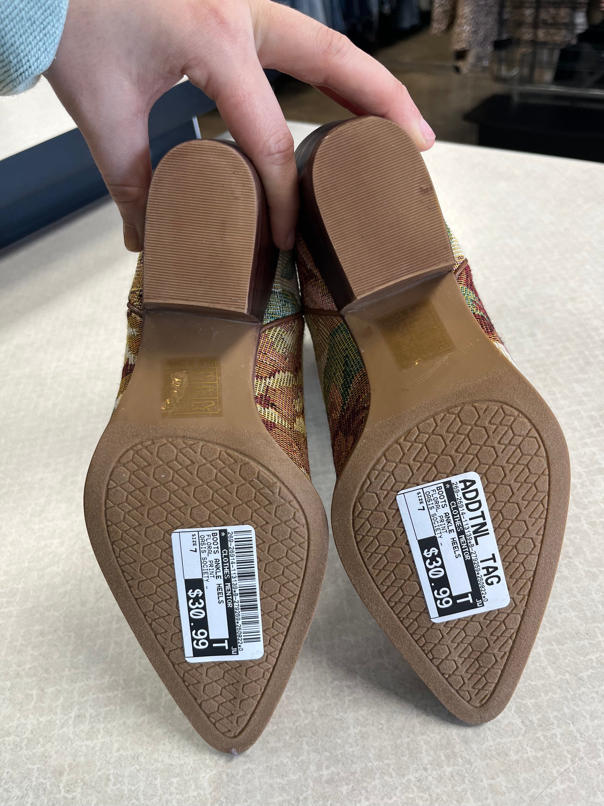 BOOTS ANKLE HEELS by CLOTHES MENTOR In FLORAL PRINT, Size: 7