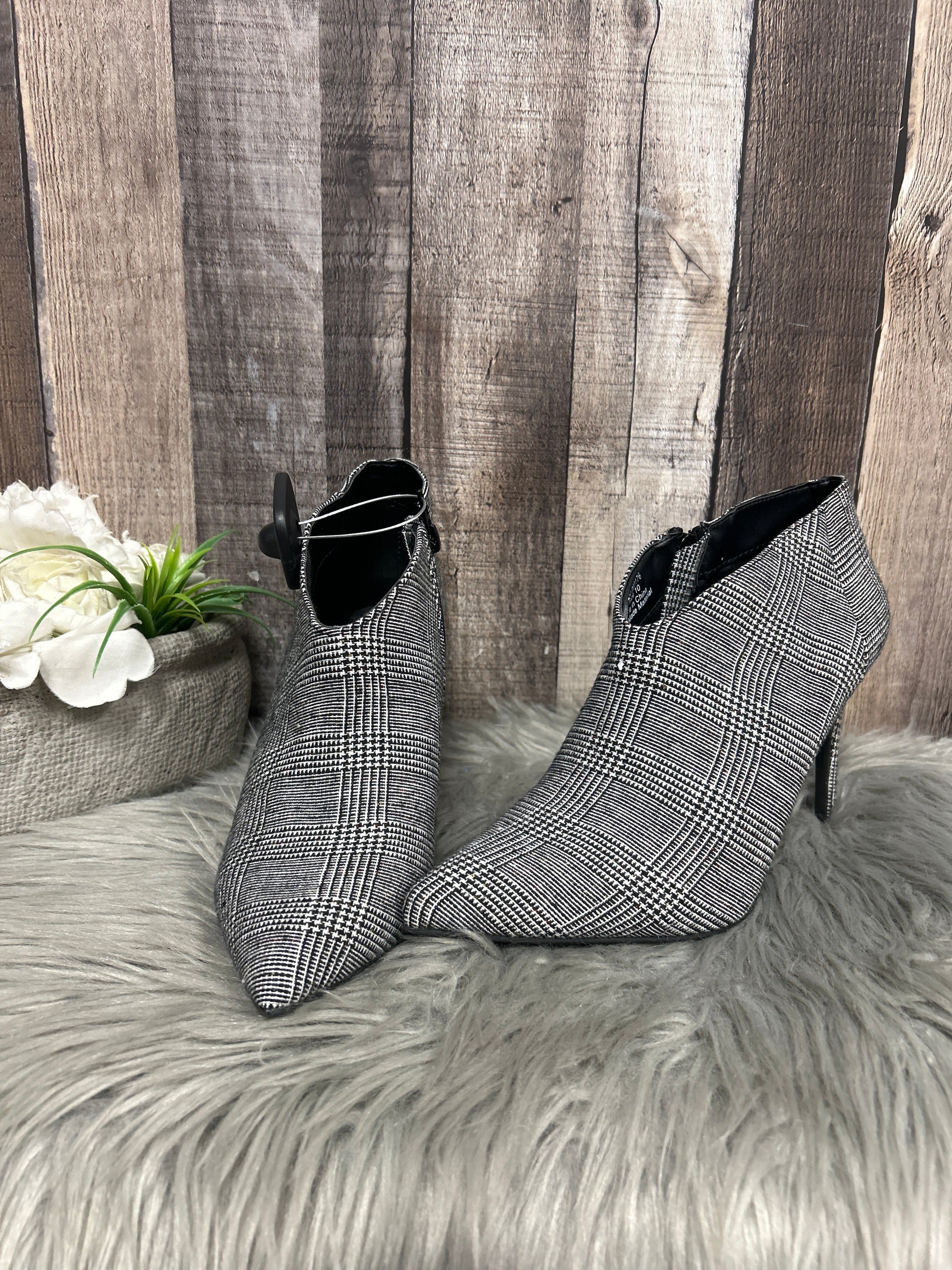 Boots Ankle Heels By Cmf In Black & White, Size: 10