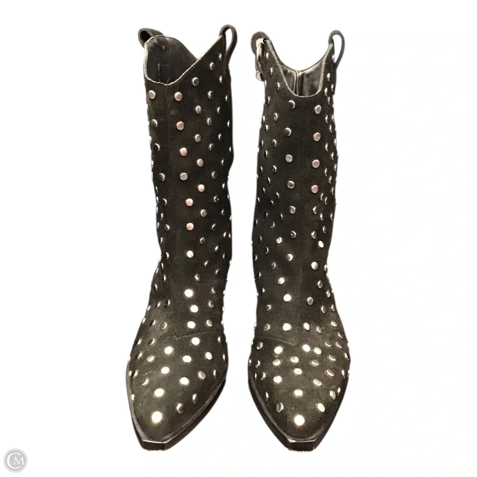 Boots Ankle Heels By Schutz In Black & Silver, Size: 10