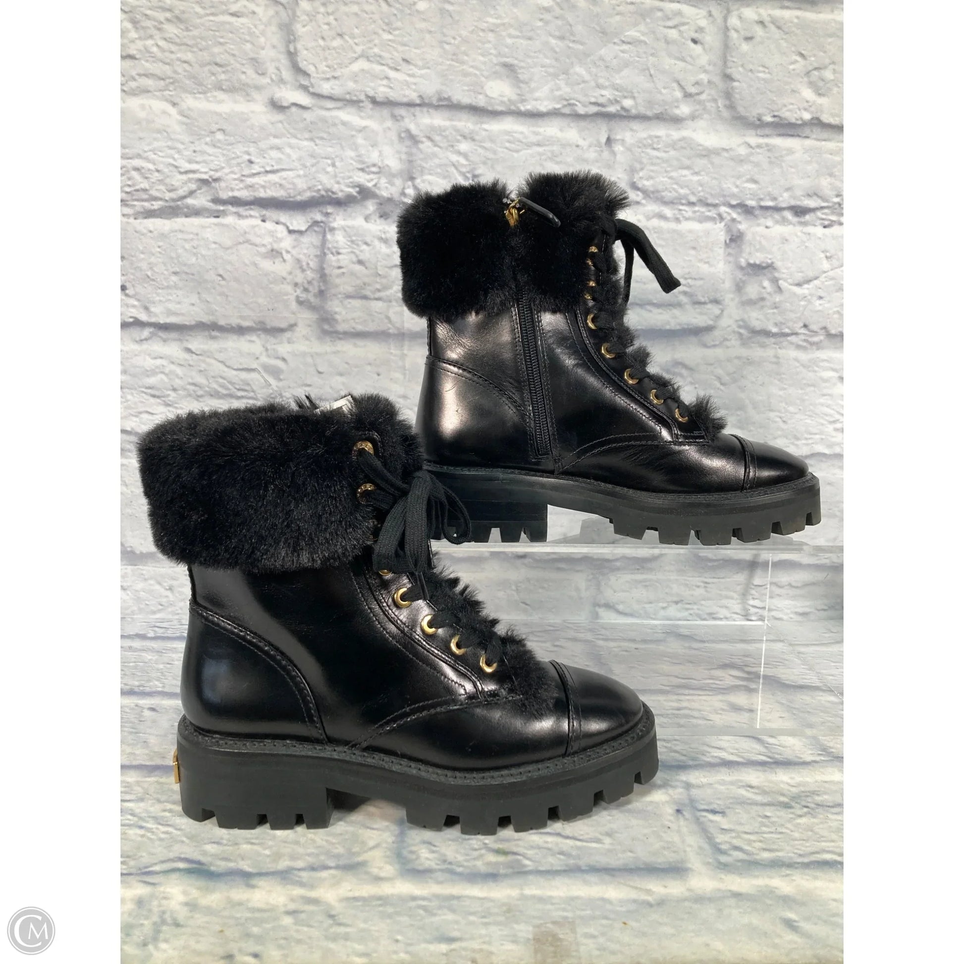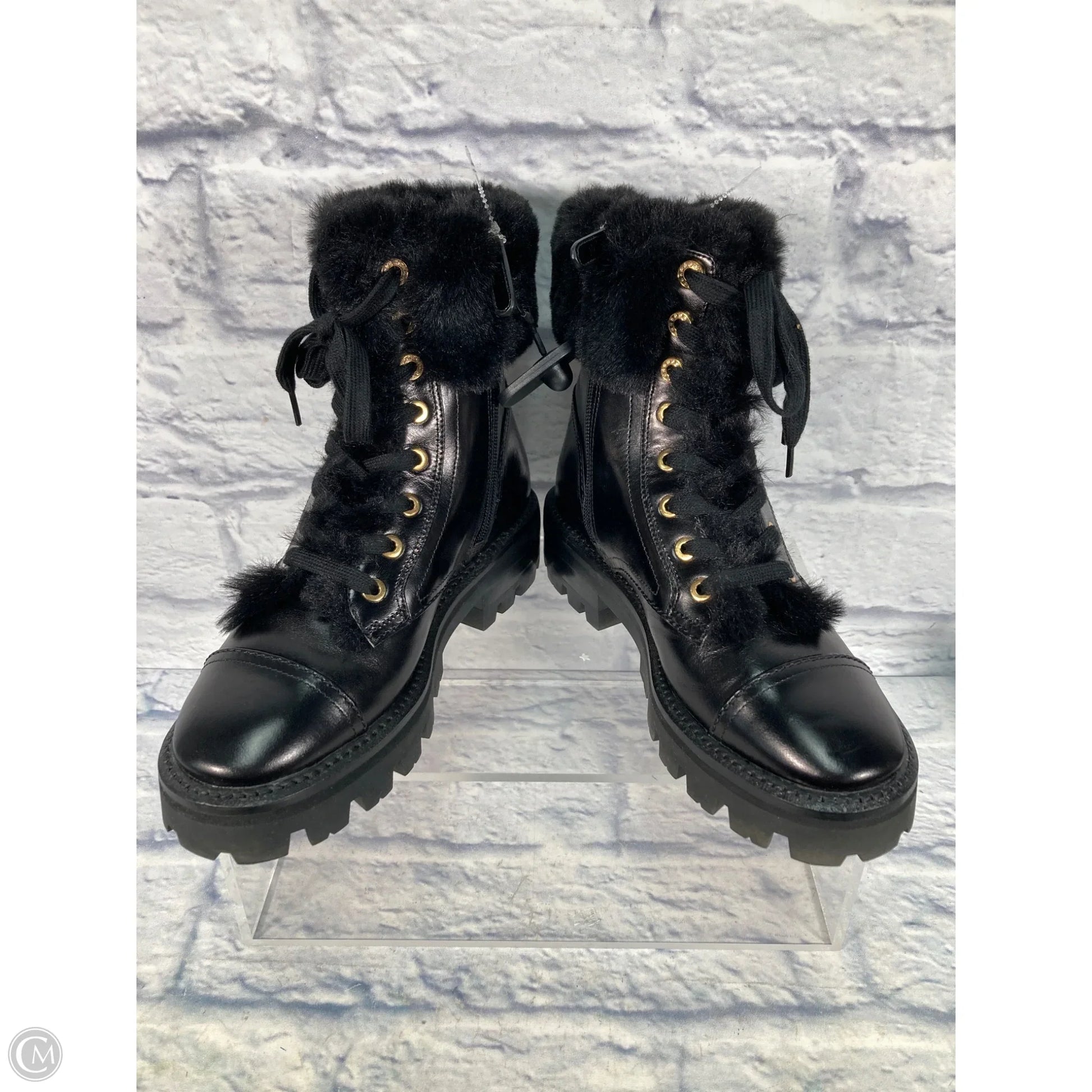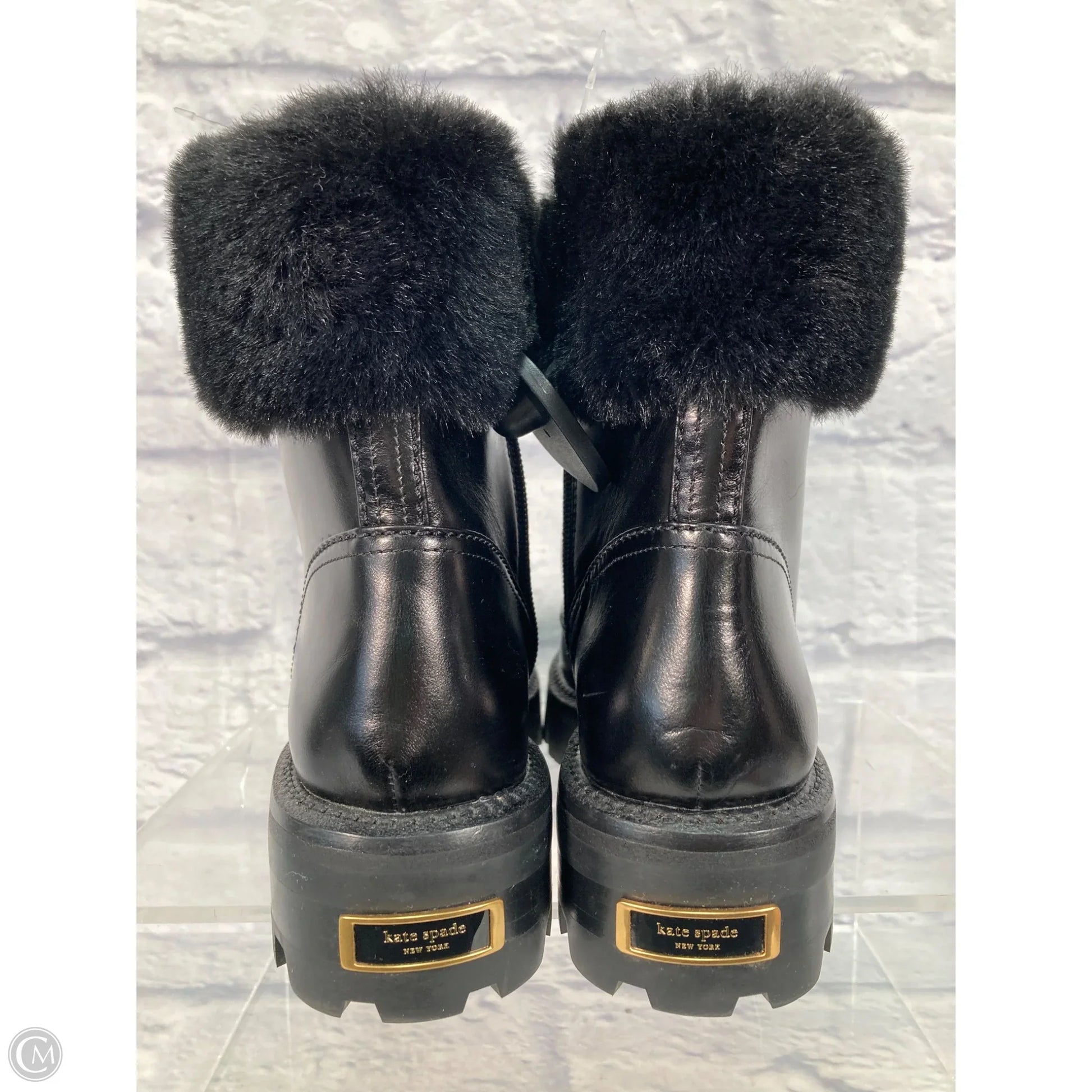 Boots Designer By Kate Spade In Black & Gold, Size: 7