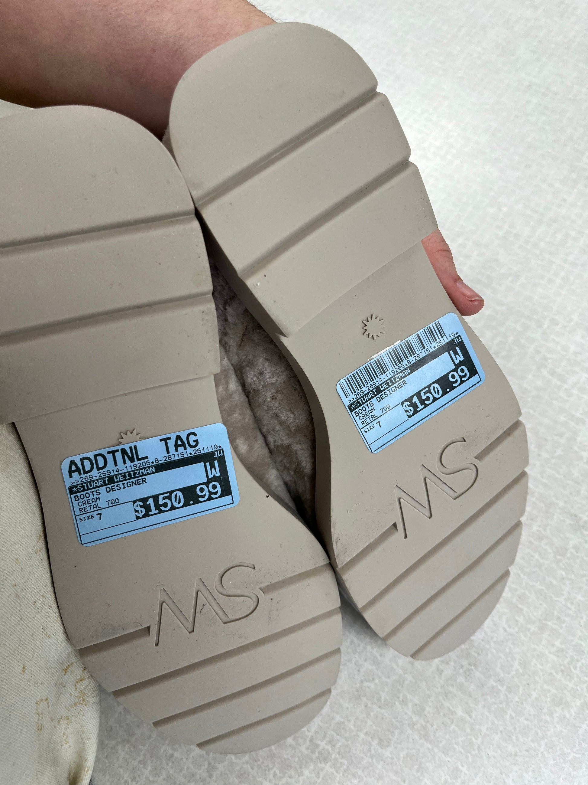 Boots Designer By Stuart Weitzman In Cream, Size:7