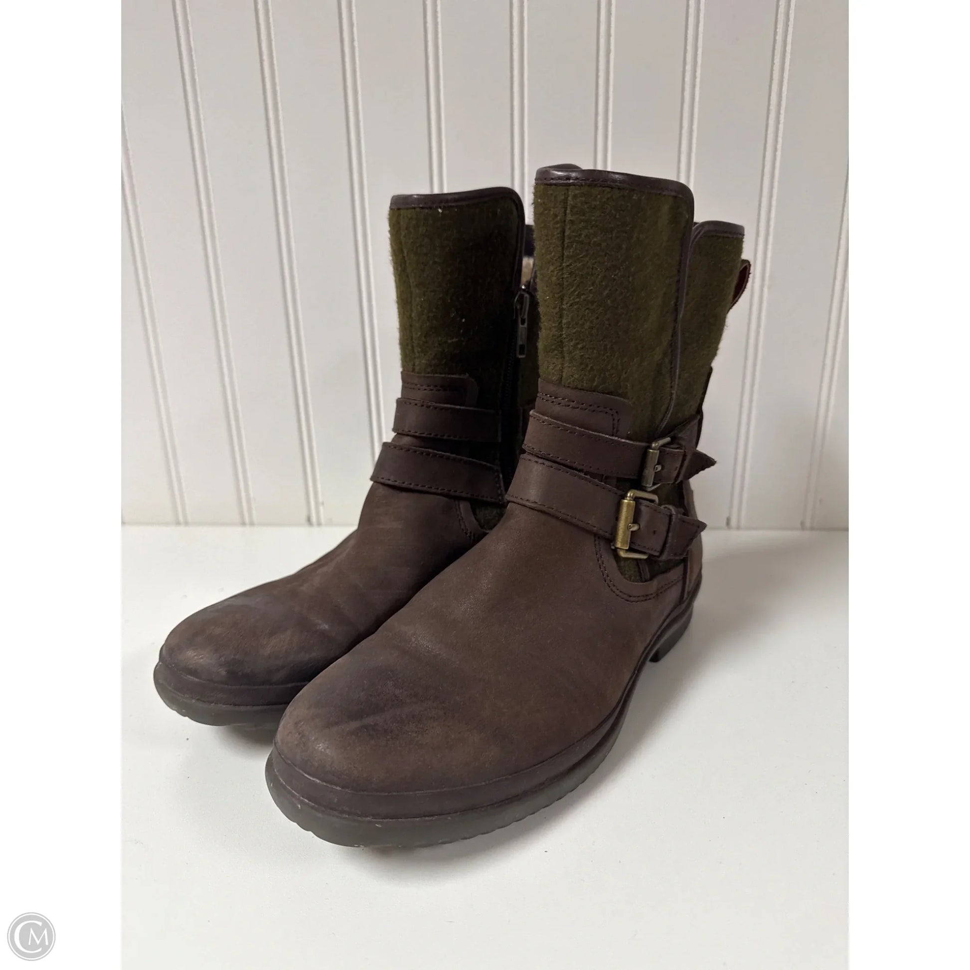 Boots Designer By Ugg In Brown & Green, Size: 7