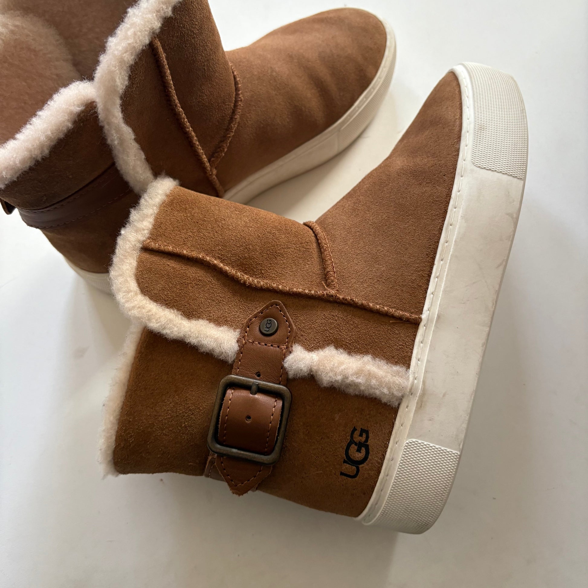 Boots Designer By Ugg In Tan, Size: 7