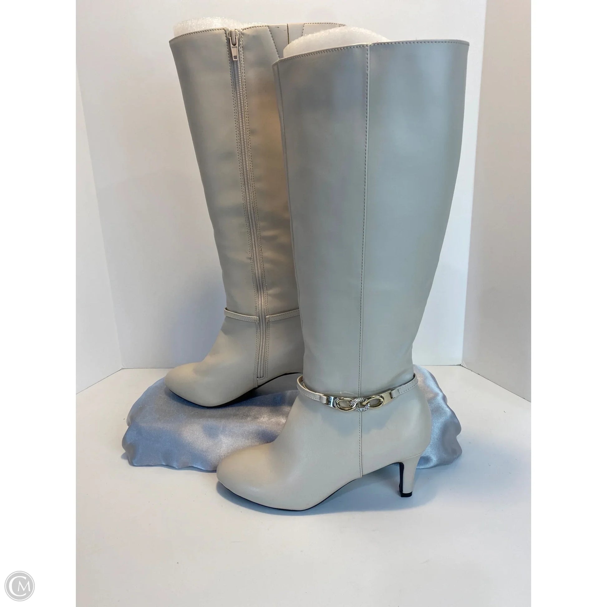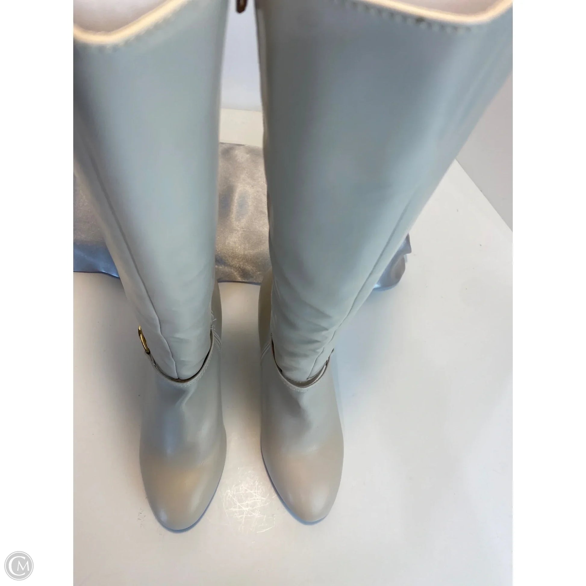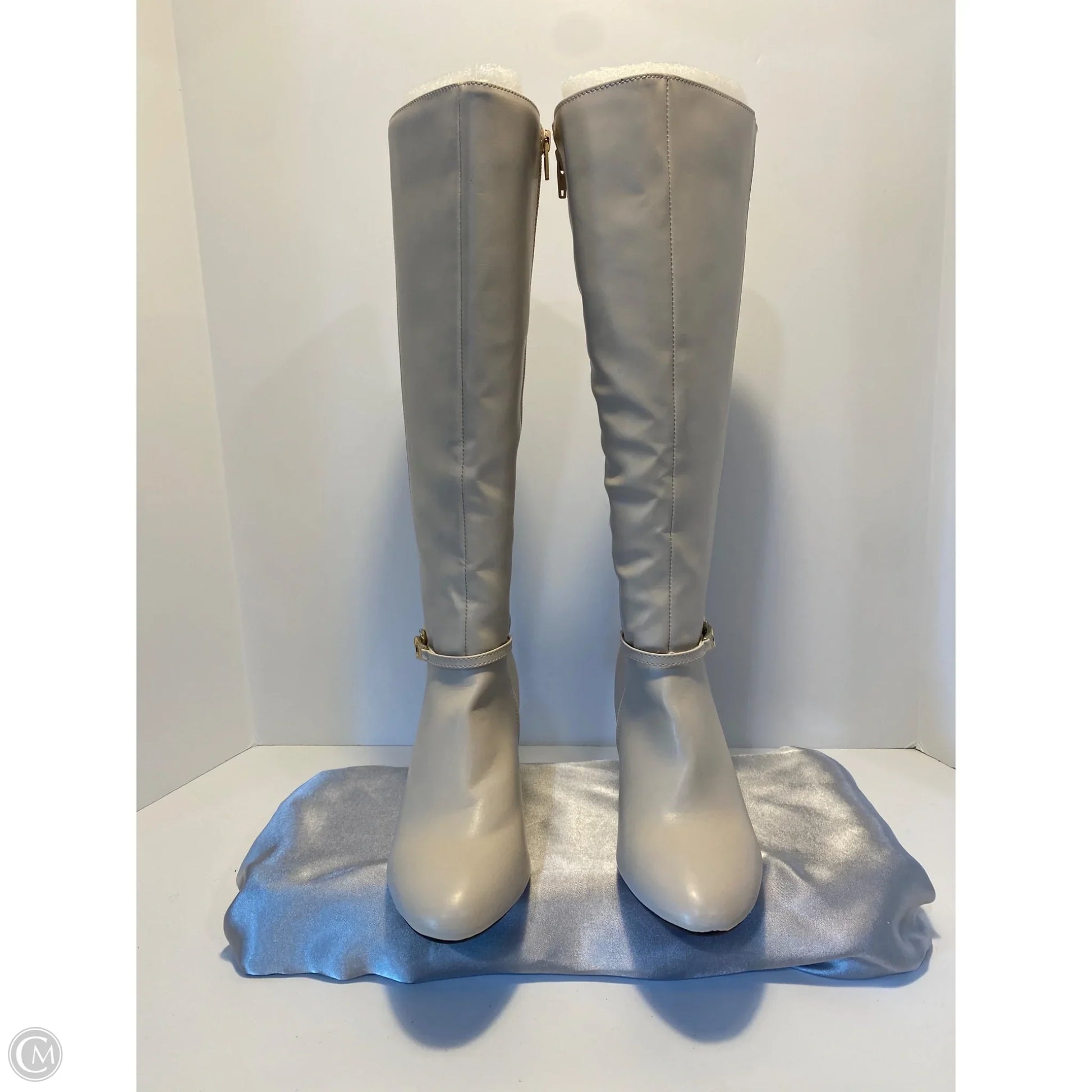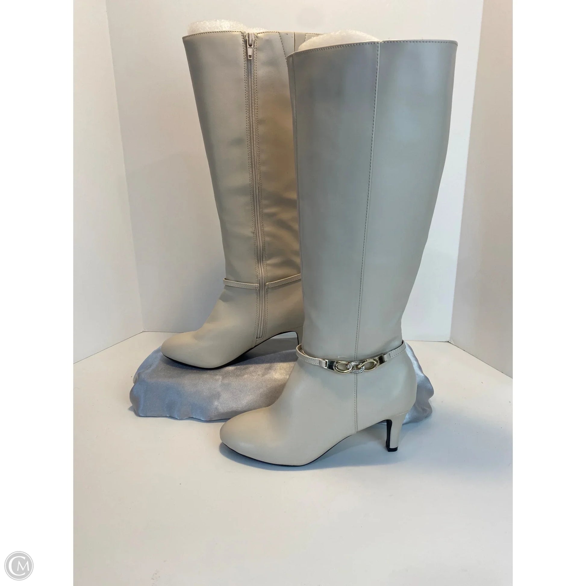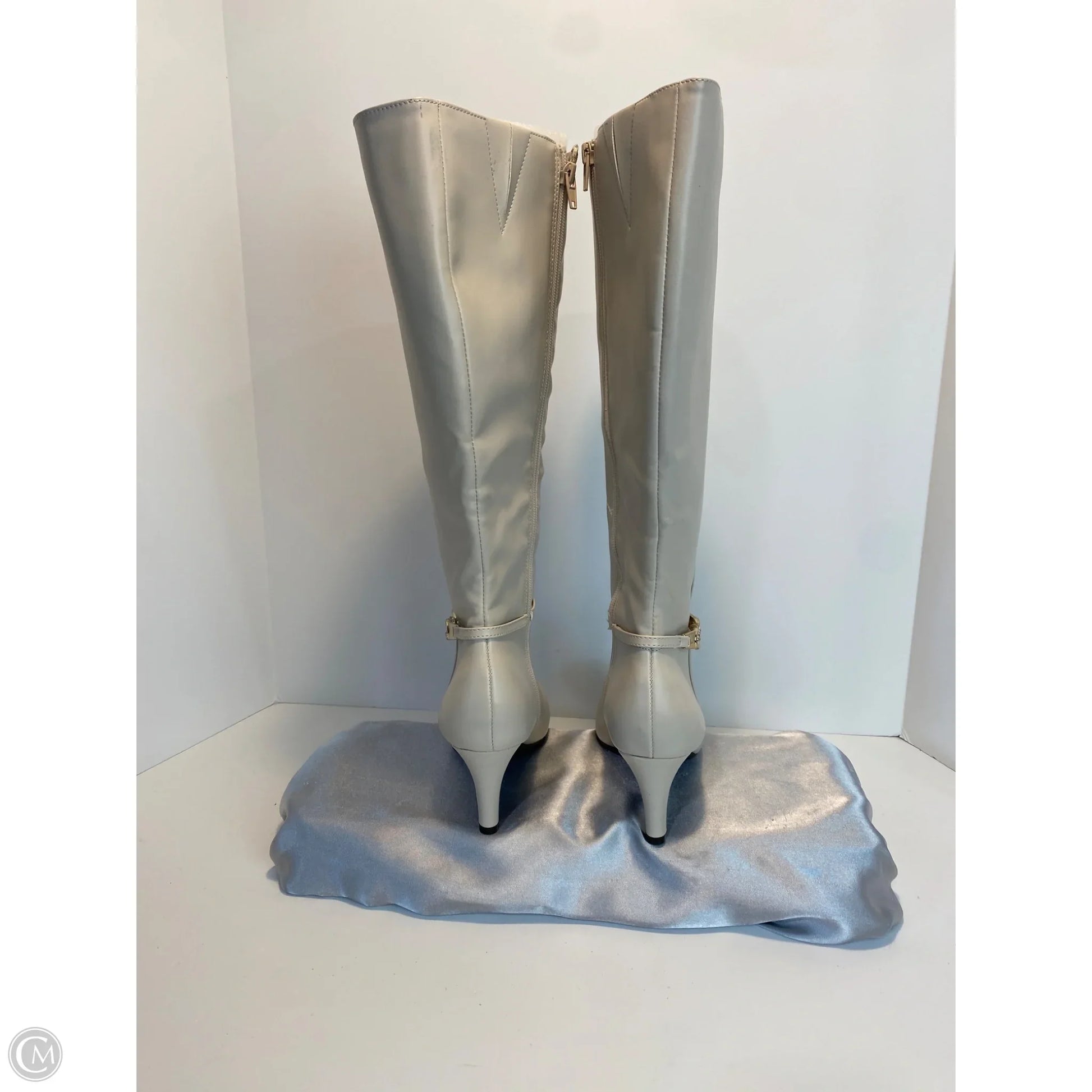 Boots Knee Heels By Clothes Mentor In Cream, Size: 6.5