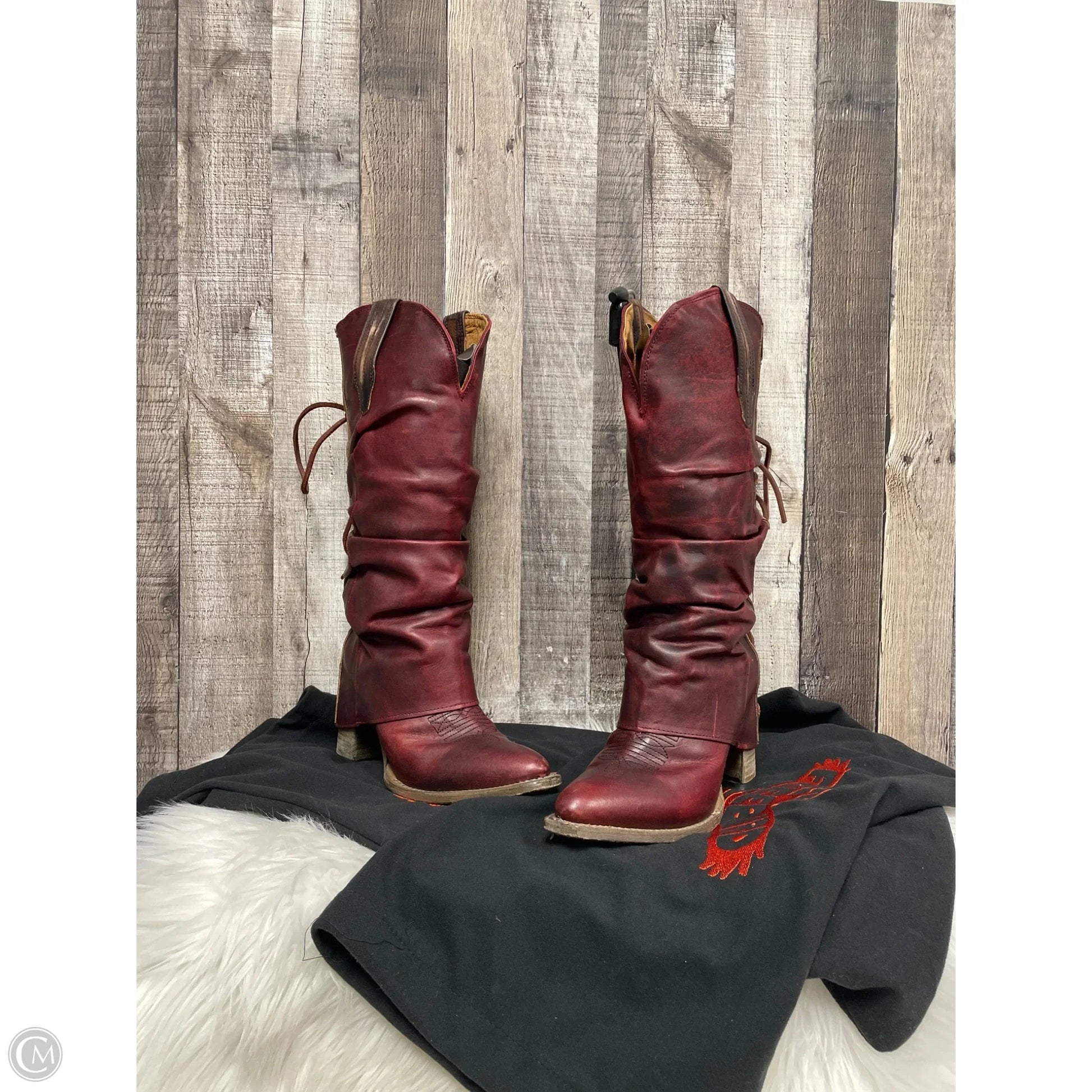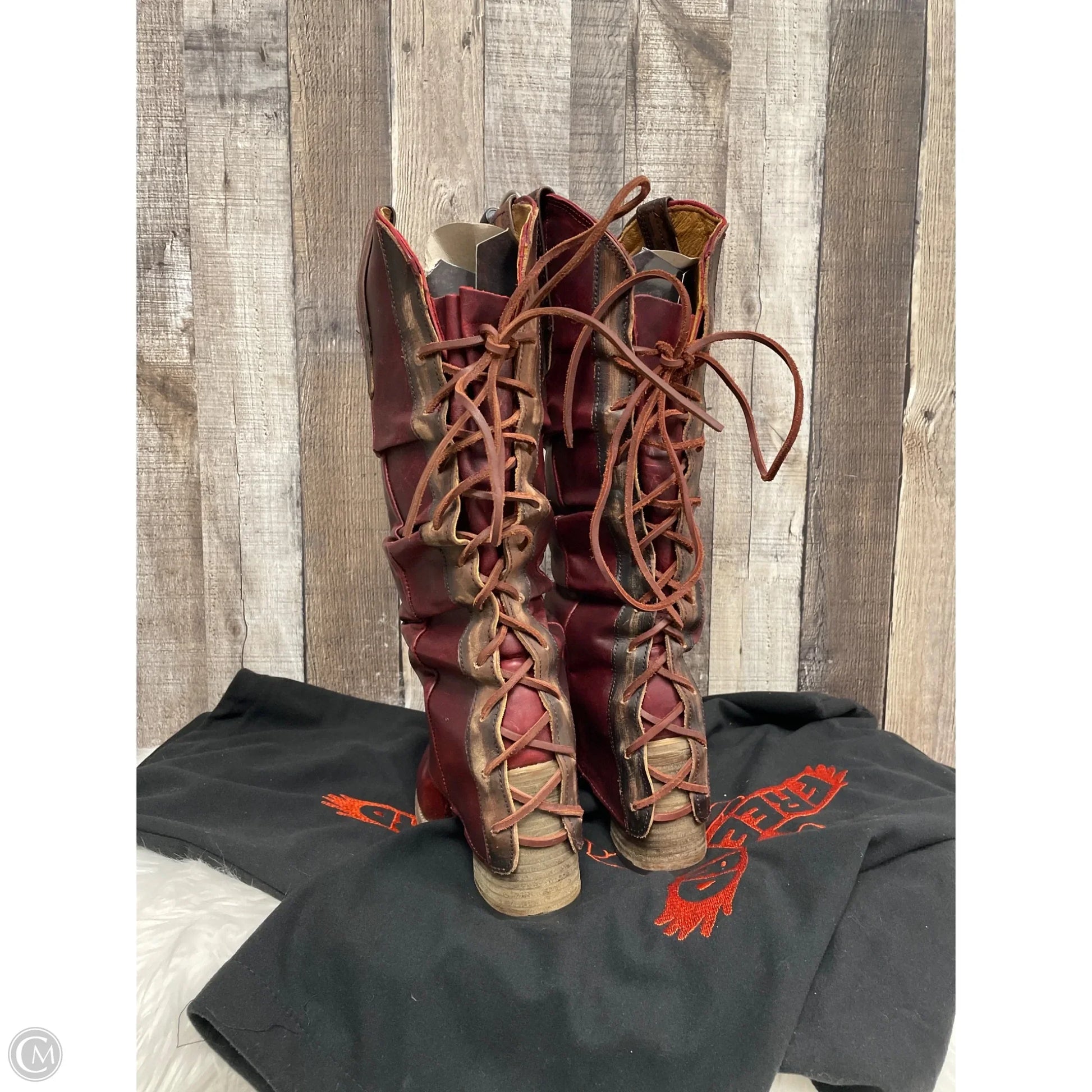 Boots Knee Heels By Freebird In Maroon, Size: 9