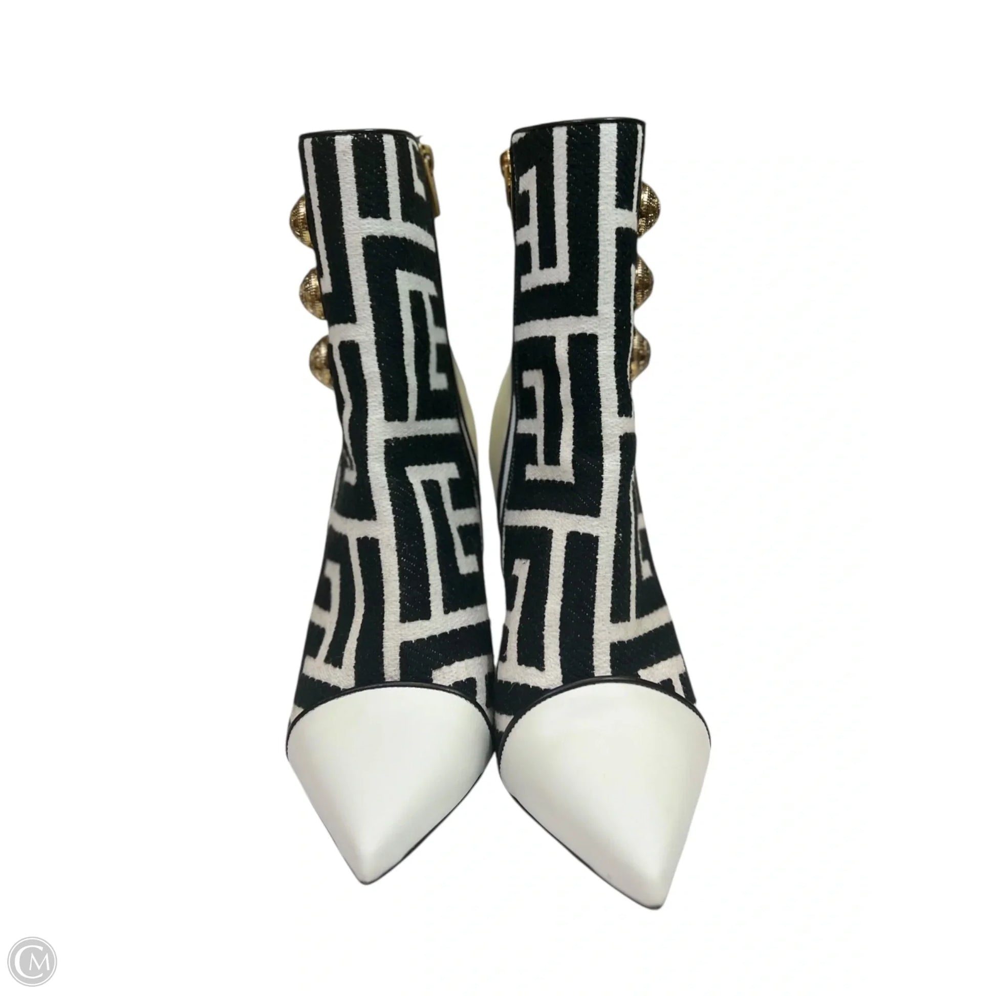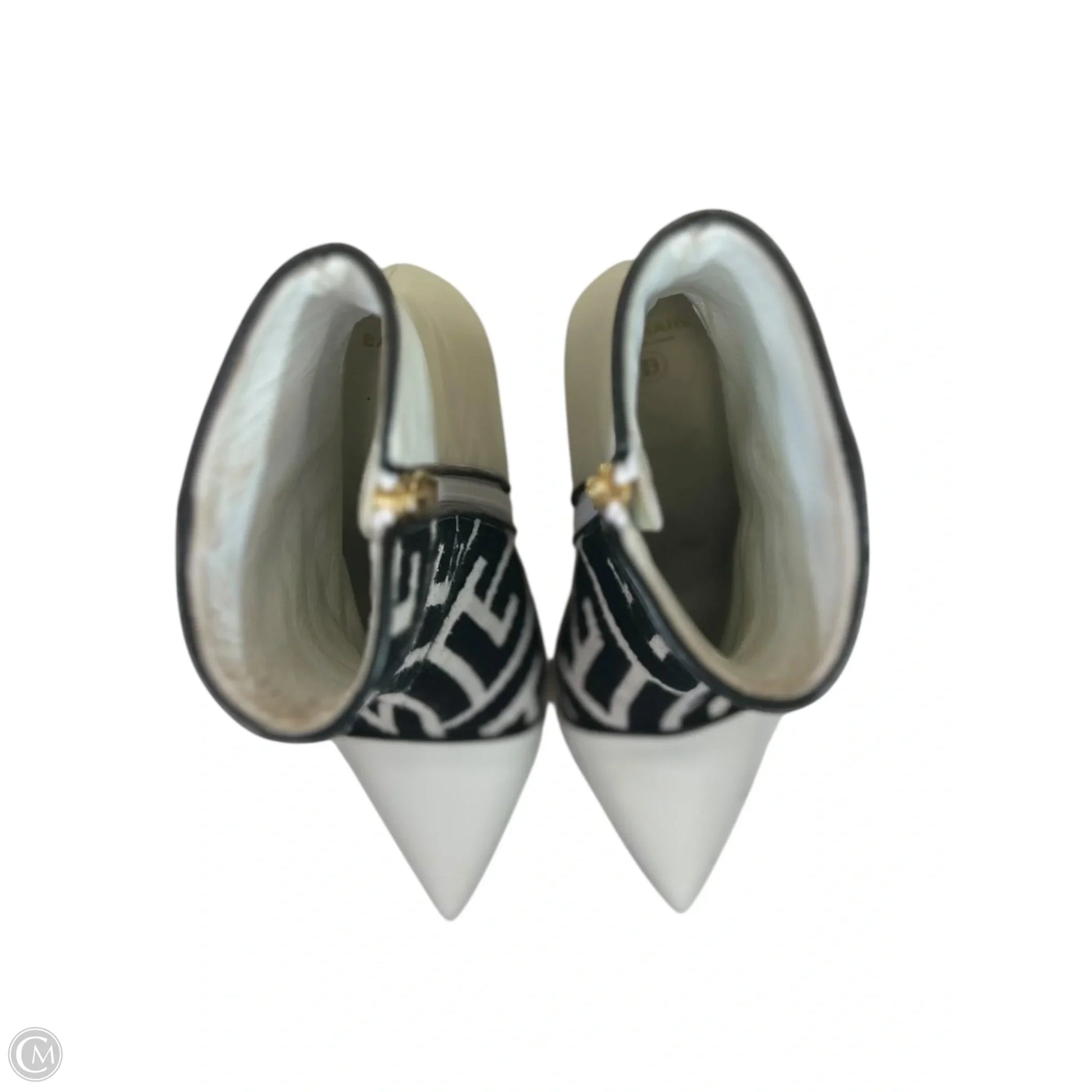 Boots Luxury Designer By Balmain In Black & White, Size: 7