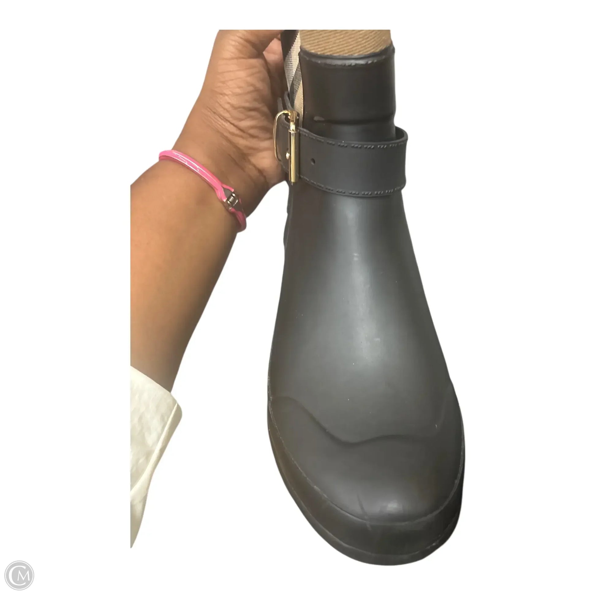 Boots Luxury Designer By Burberry In Plaid Pattern, Size: 10