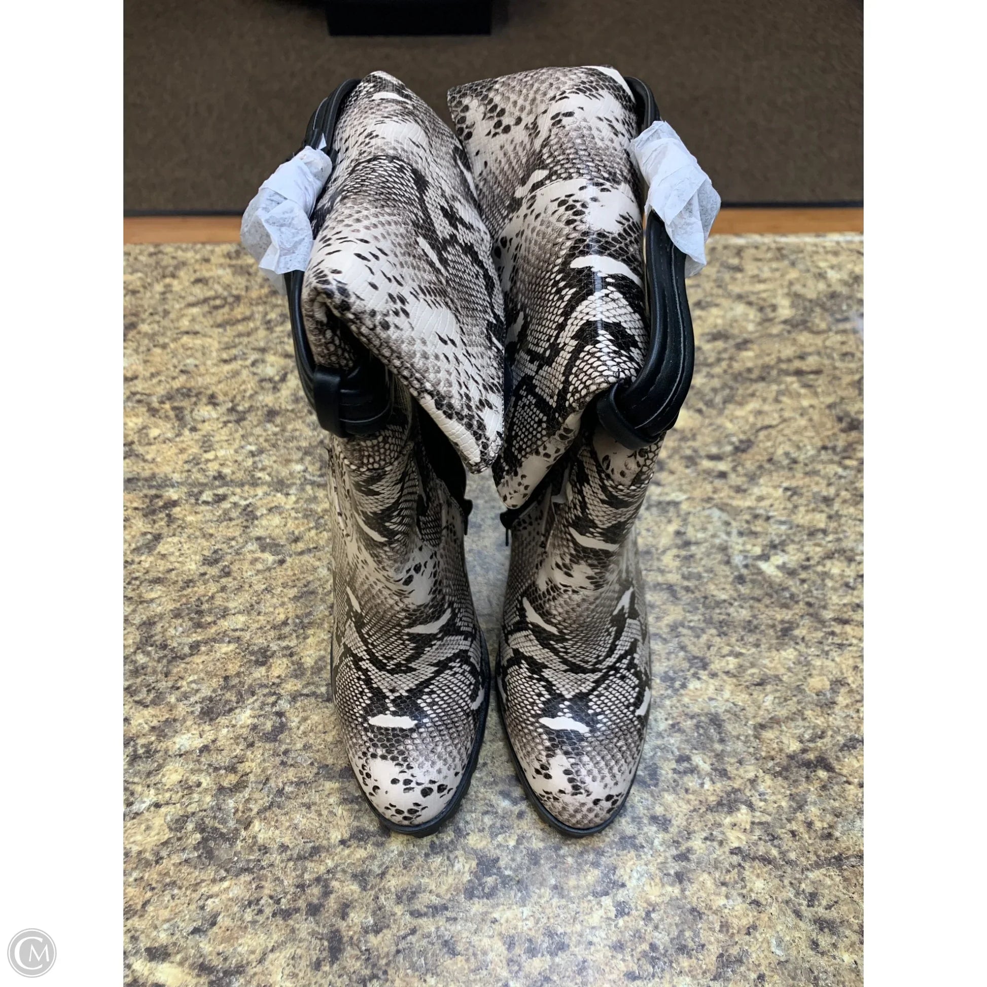 Boots Mid-calf Heels By Shoedazzle In Snakeskin Print, Size: 8