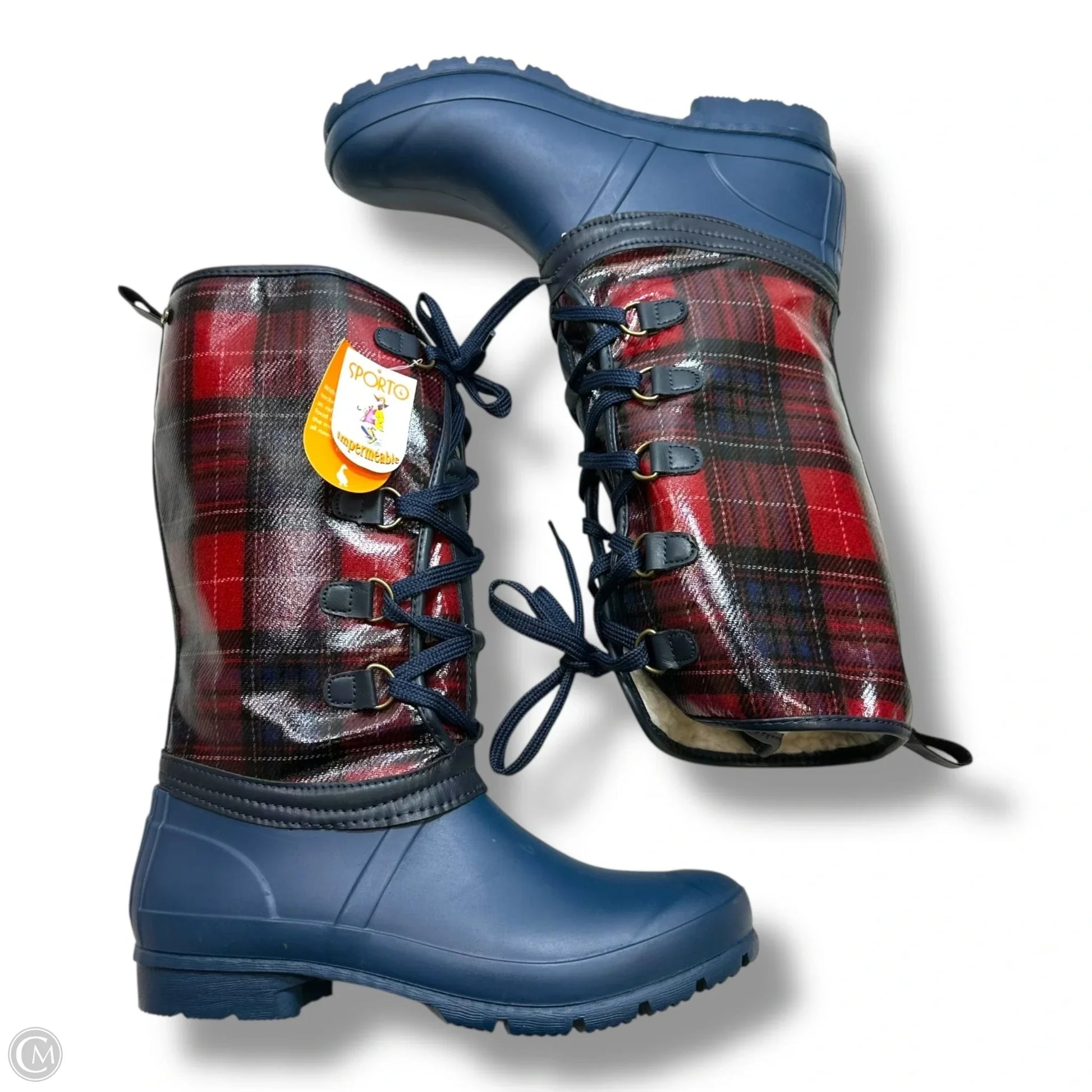Boots Rain By Sporto In Plaid Pattern, Size: 10