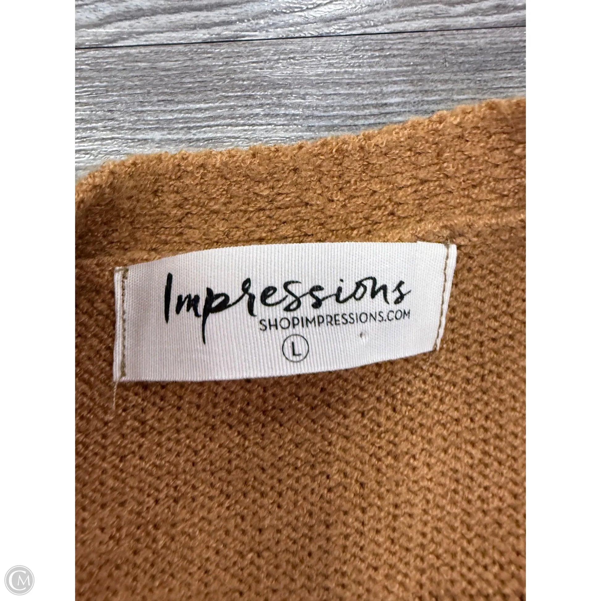 Wrap yourself in cozy luxury with Impressions' Tan Cardigan in Size L. Perfect for both style and comfort seekers. Stay chic!