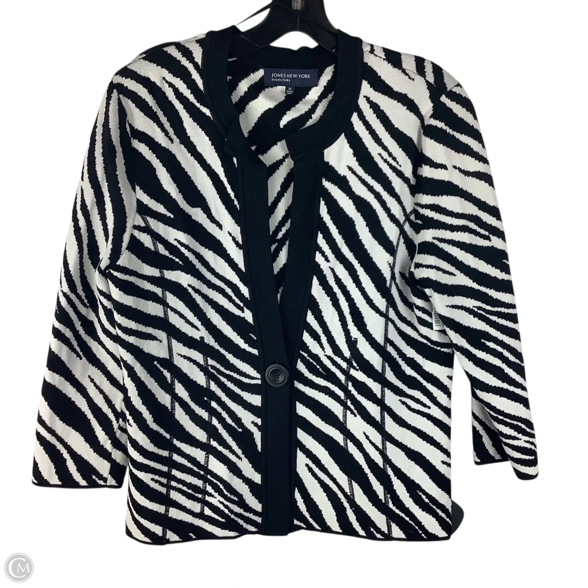 Stride with confidence in this Jones New York zebra print cardigan. Size M, it's a bold statement piece for the fashion-forward.