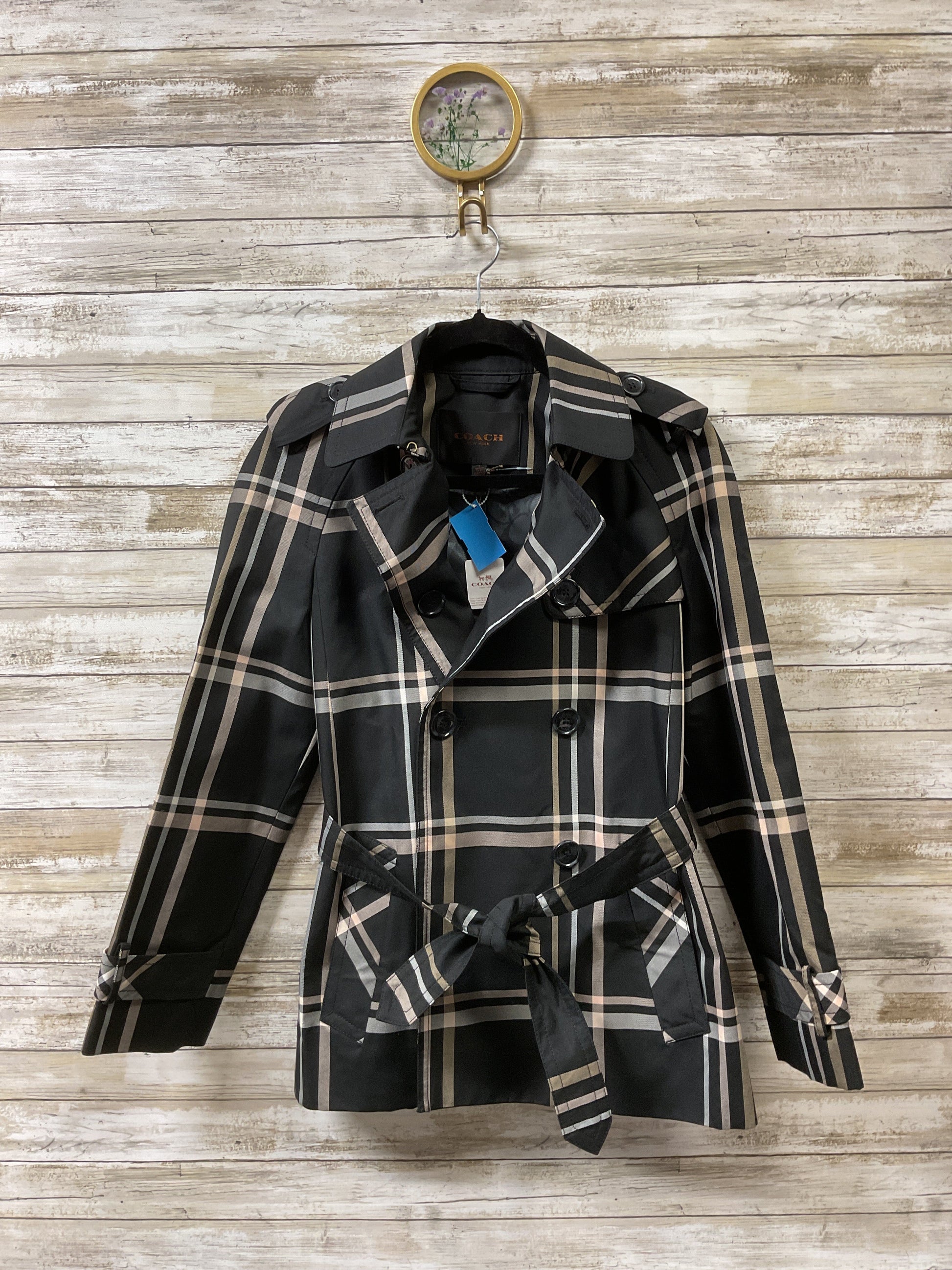Coat Designer By Coach In Plaid Pattern, Size:S