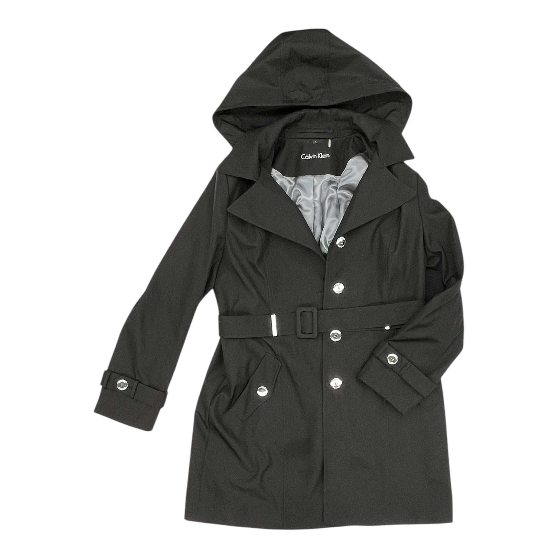Coat Trench Coat By Calvin Klein In Black, Size:L