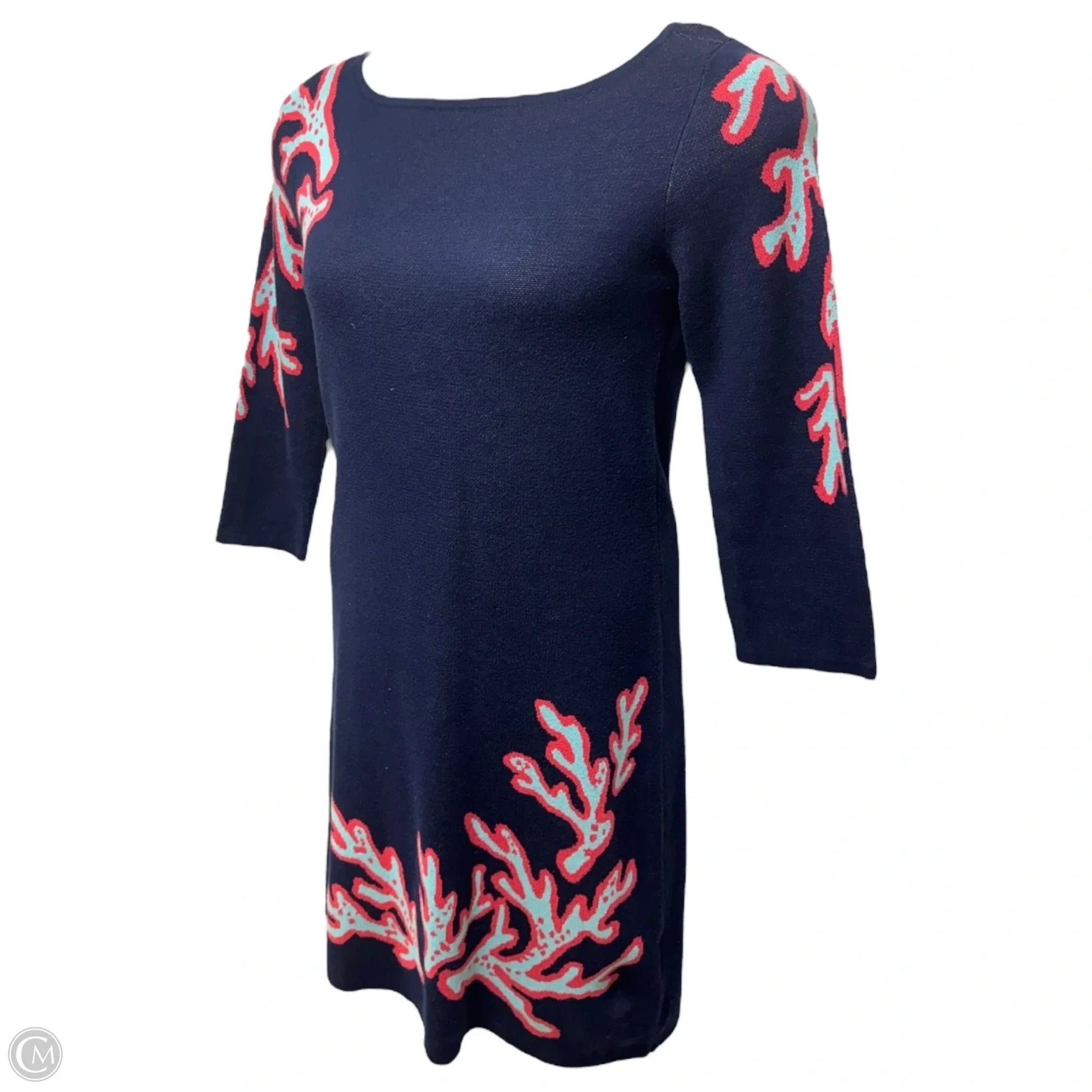 Polly Sweater Shift Dress Designer By Lilly Pulitzer In True Navy Large Coral Jacquard, Size: M