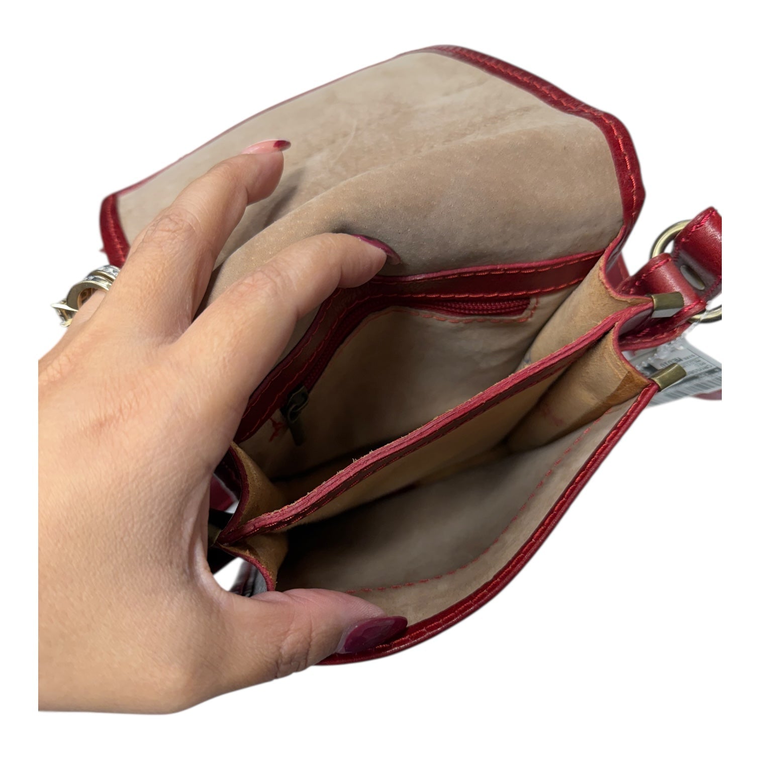 Crossbody Leather By Florence made in Italy In Red, Size:Medium