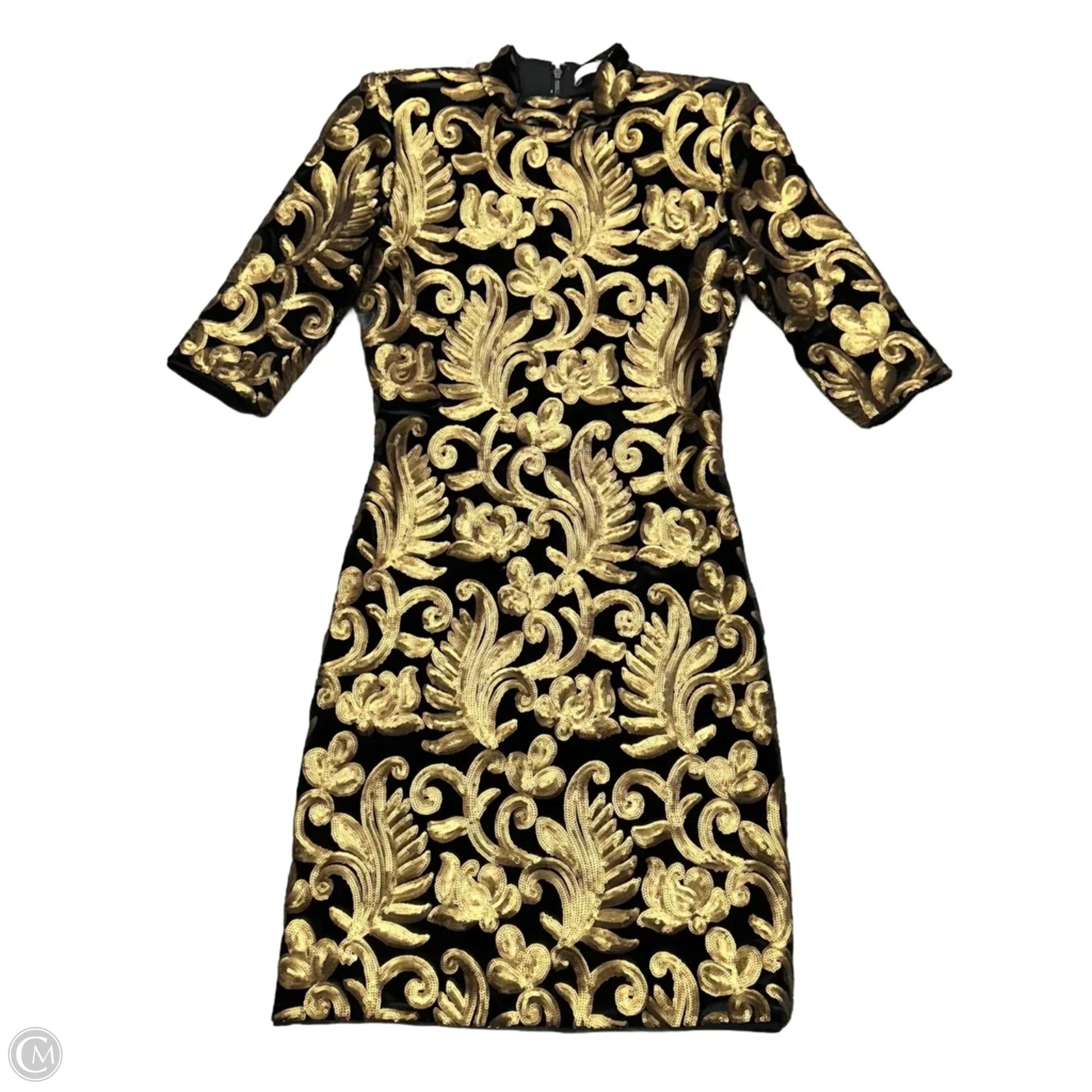 Dress Designer By Alice + Olivia In Black & Gold, Size: Xs