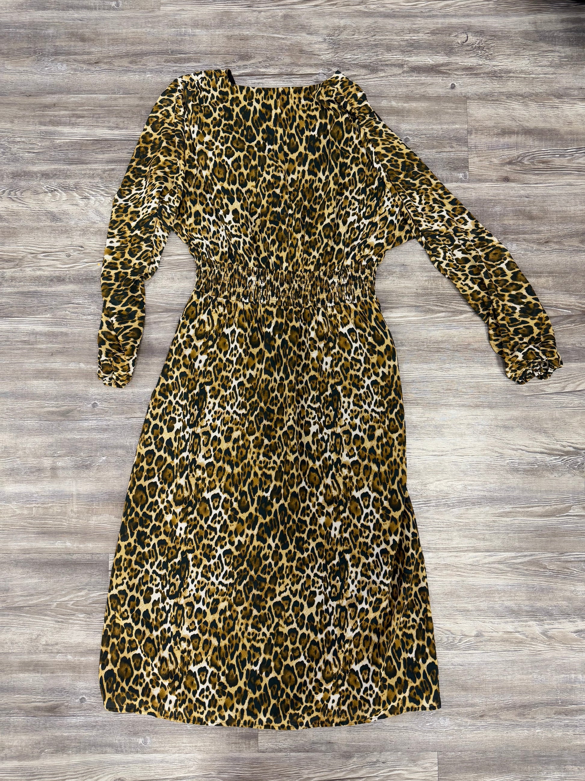 Effortlessly elegant in animal print, this Wayf midi dress in size L is perfect for parties. Luxurious fabric, flattering fit, and bold style make it a standout choice.