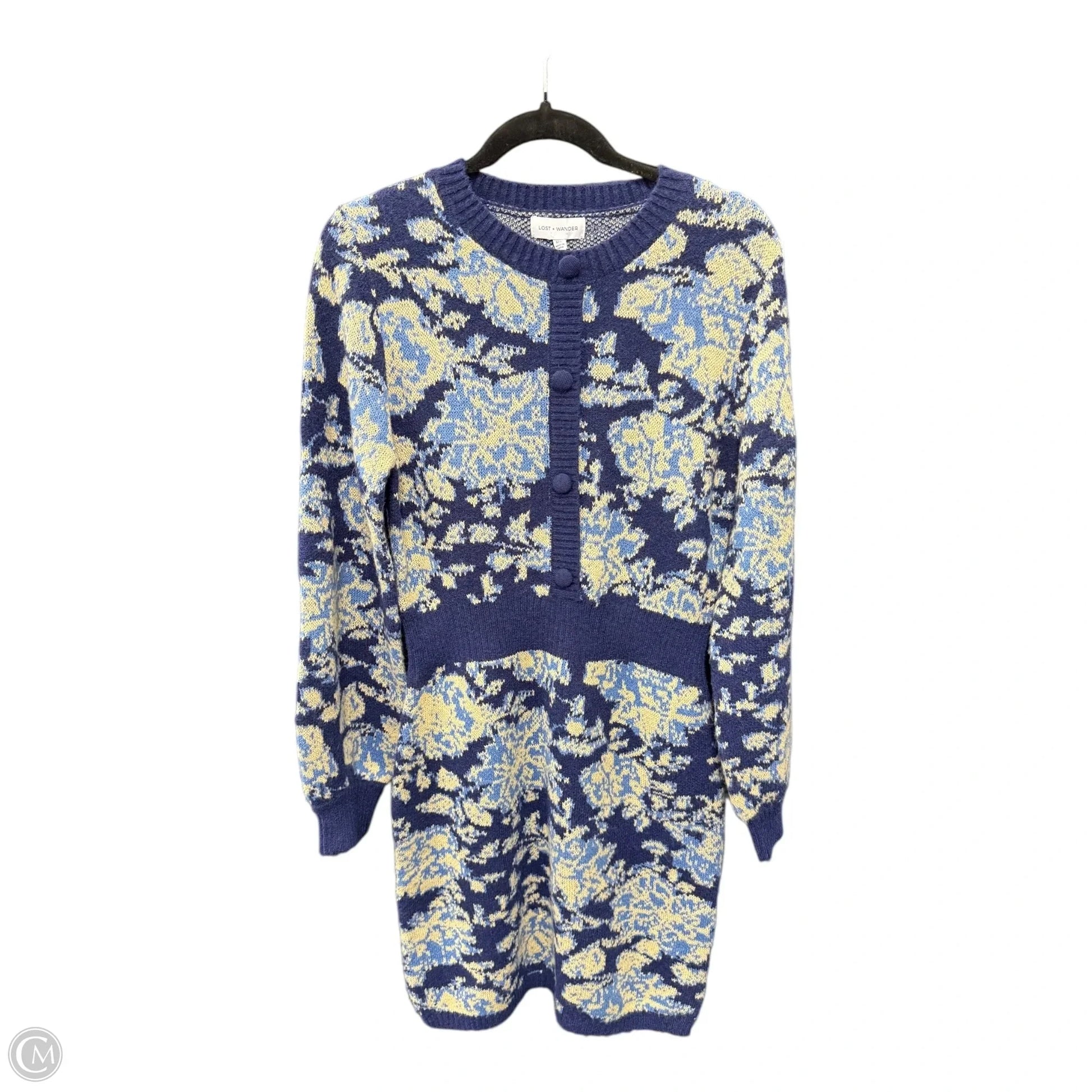 Dress Sweater By Cmb In Blue & Cream, Size: M