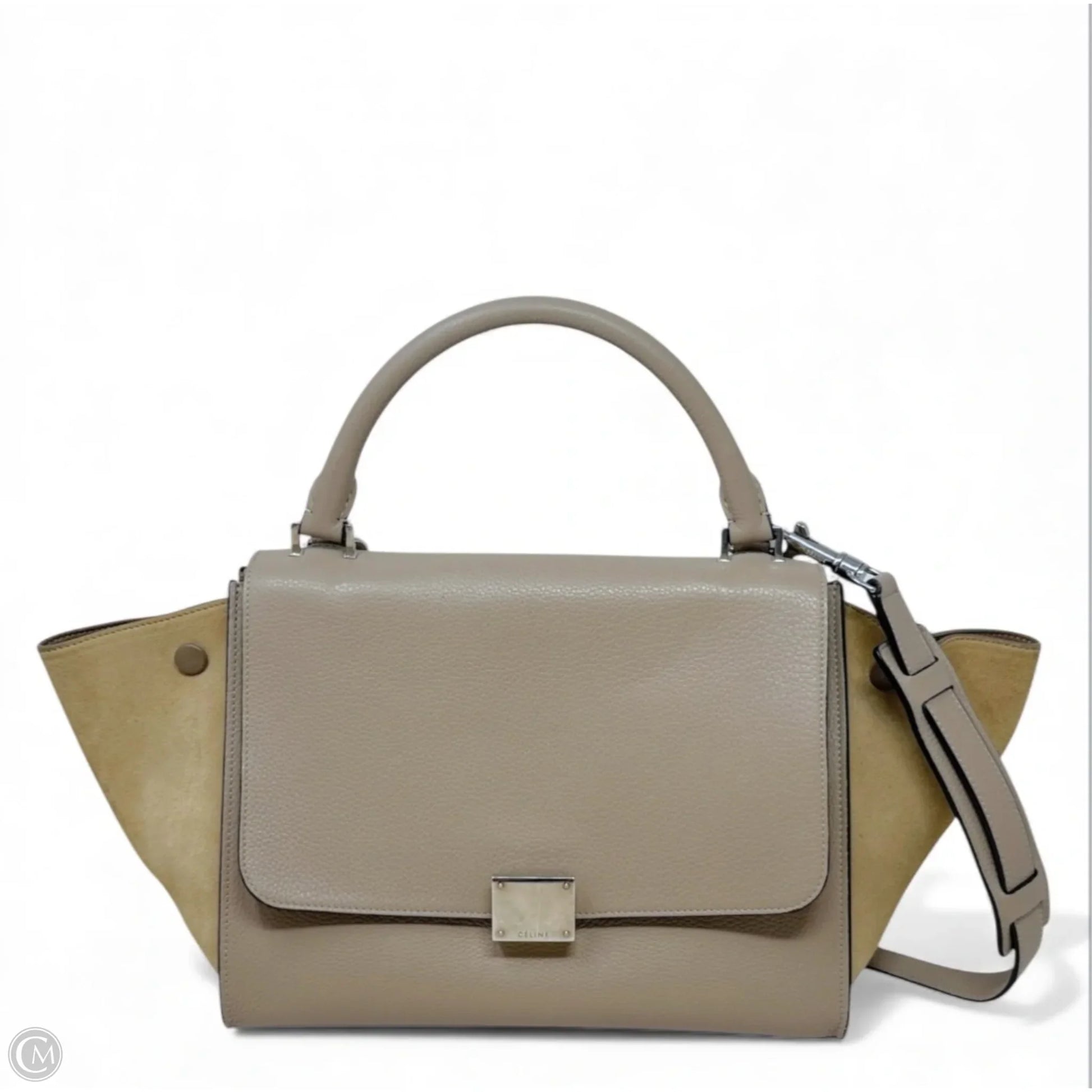 Drummed Calfskin Suede Medium Trapeze Souris Tote Luxury Designer By Celine, Size: Medium