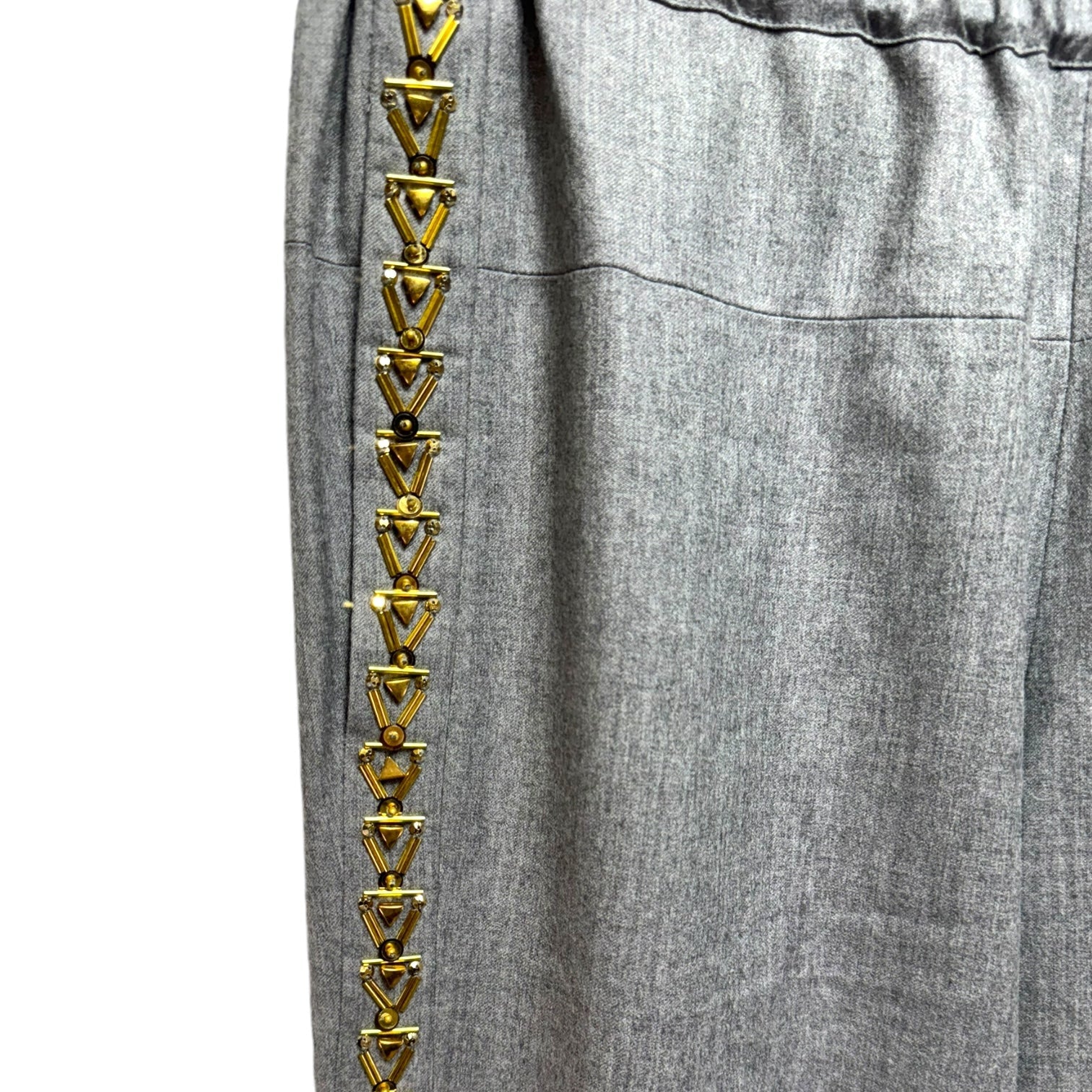 Embellished Italian Wool Pull On Pant By J. Crew Collection In Beaded Tux Stripe, Size: 0