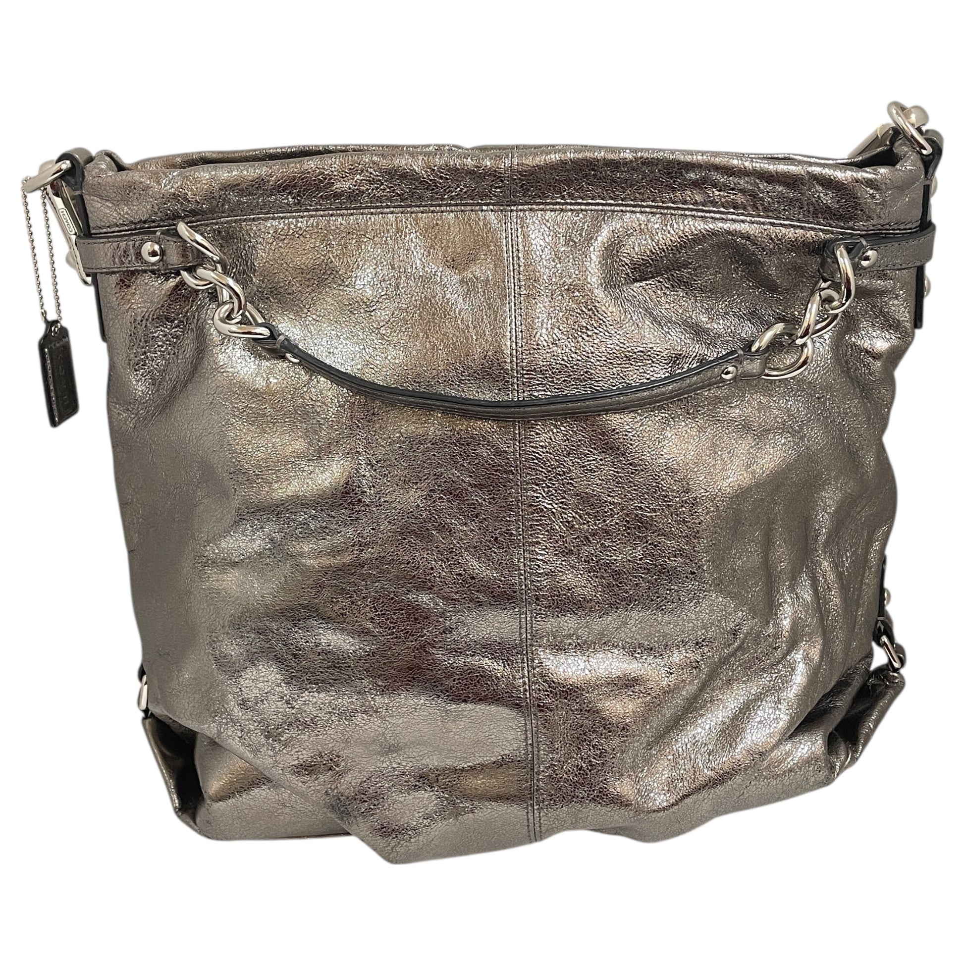 Handbag Designer By Coach In Silver, Size:Large