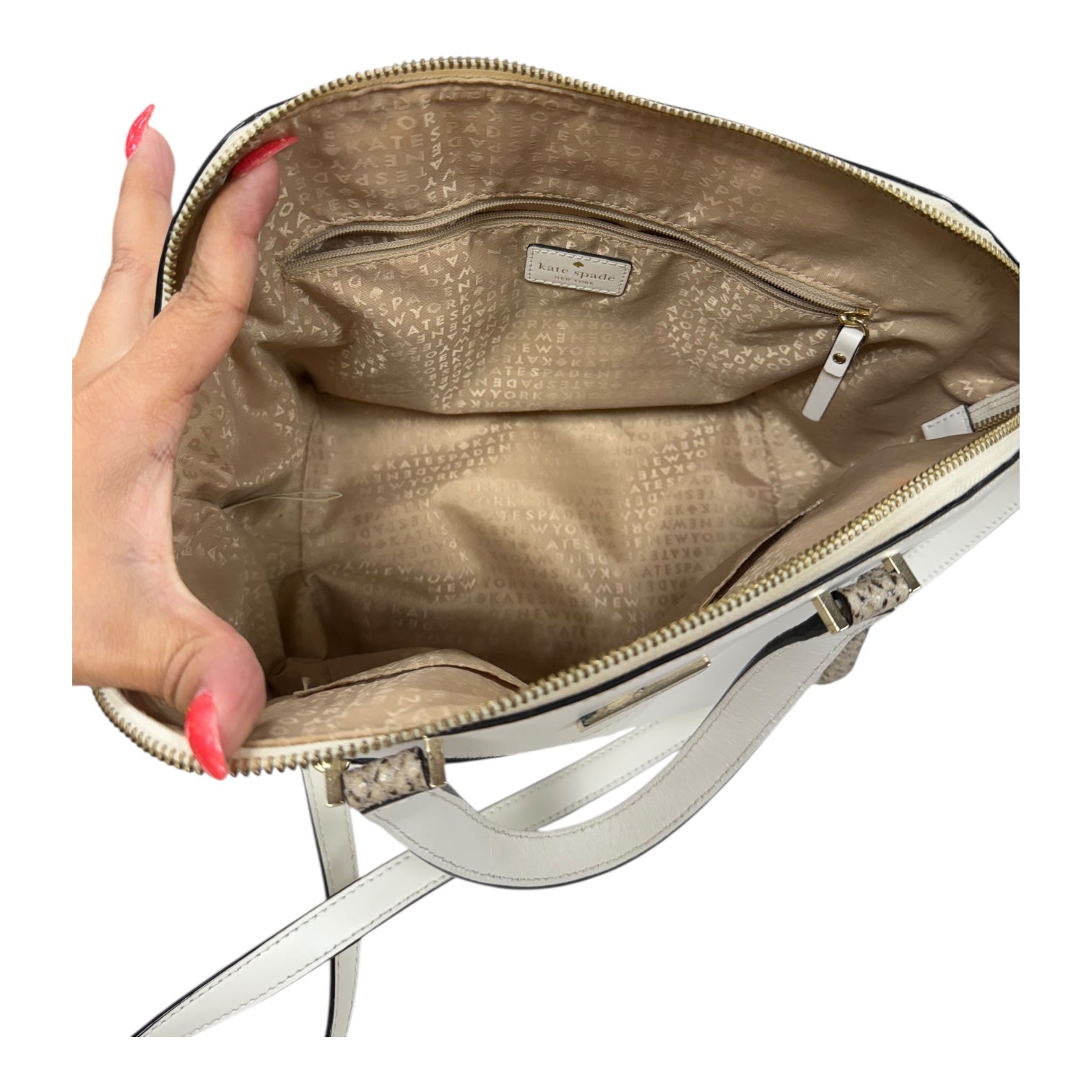 Creamy Kate Spade medium handbag, a chic essential for your daily adventures. Add a touch of luxury!