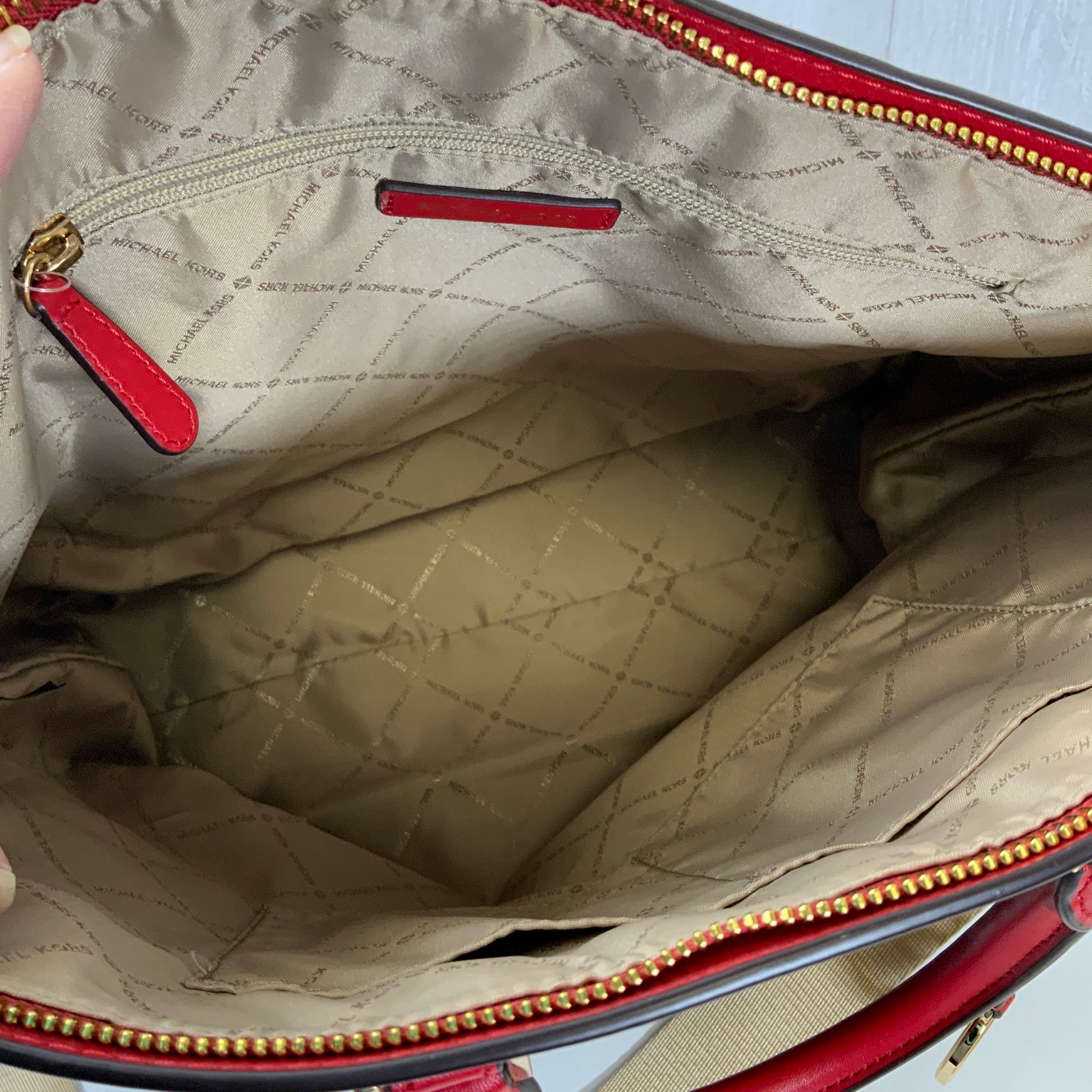 Handbag Designer By Michael Kors In Brown & Red, Size:Large