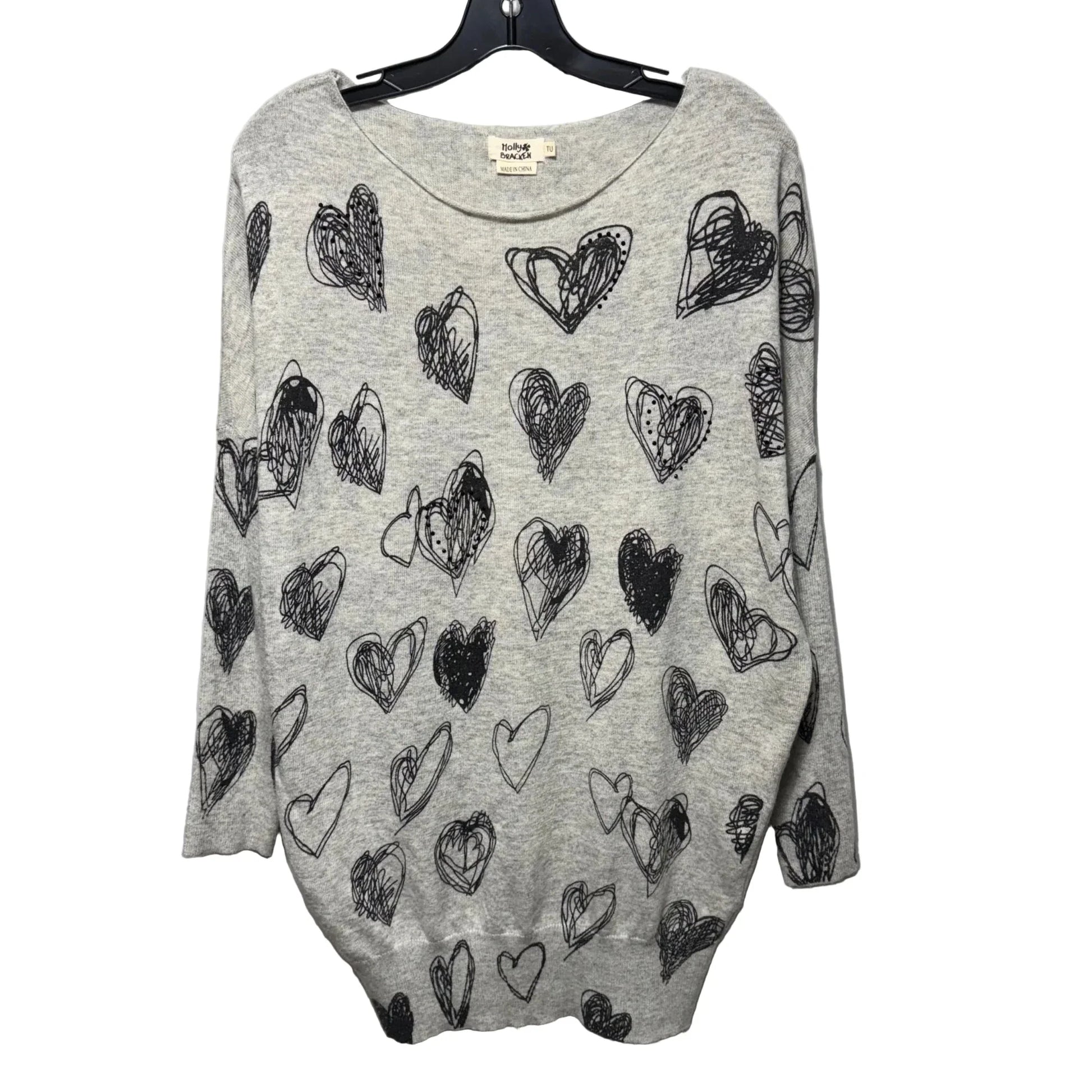 Heart Sweater By Molly Bracken In Black & Grey, Size: Osfm