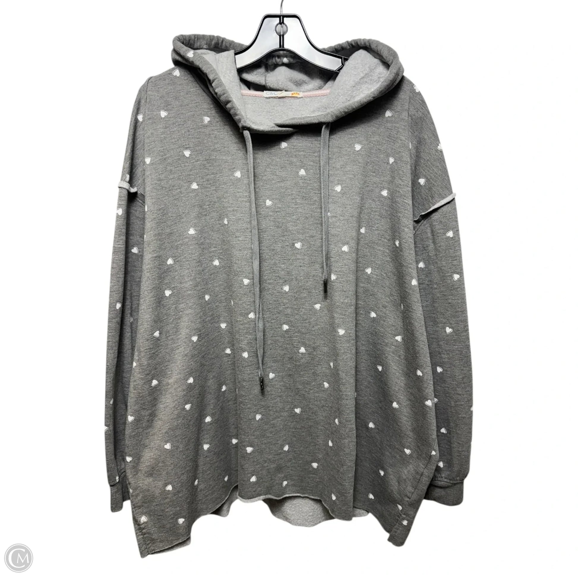 Heart Sweatshirt Hoodie By C And C In Grey, Size: 2x