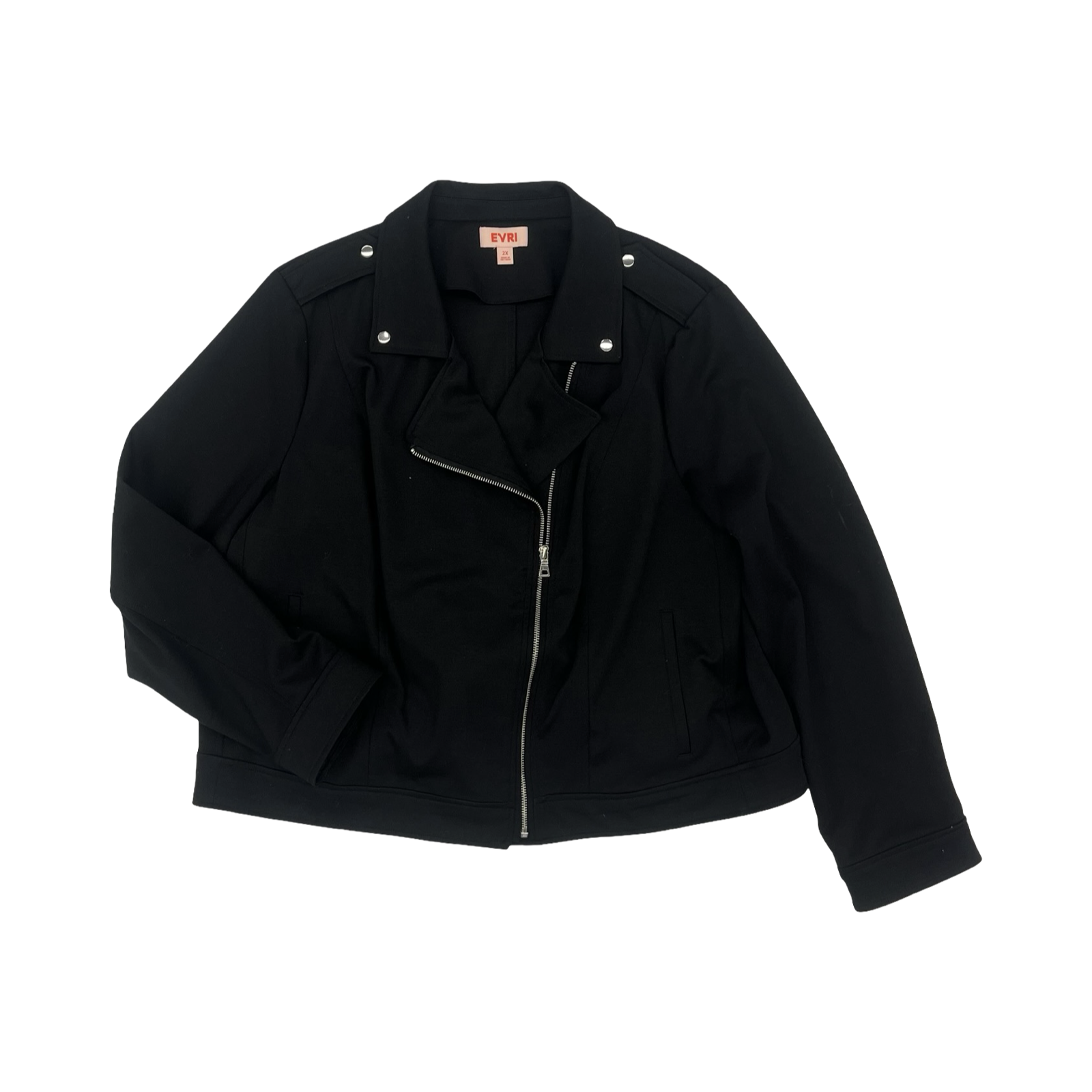 Rev up your look with the edgy Moto jacket by Evri in stylish black, size 2X!