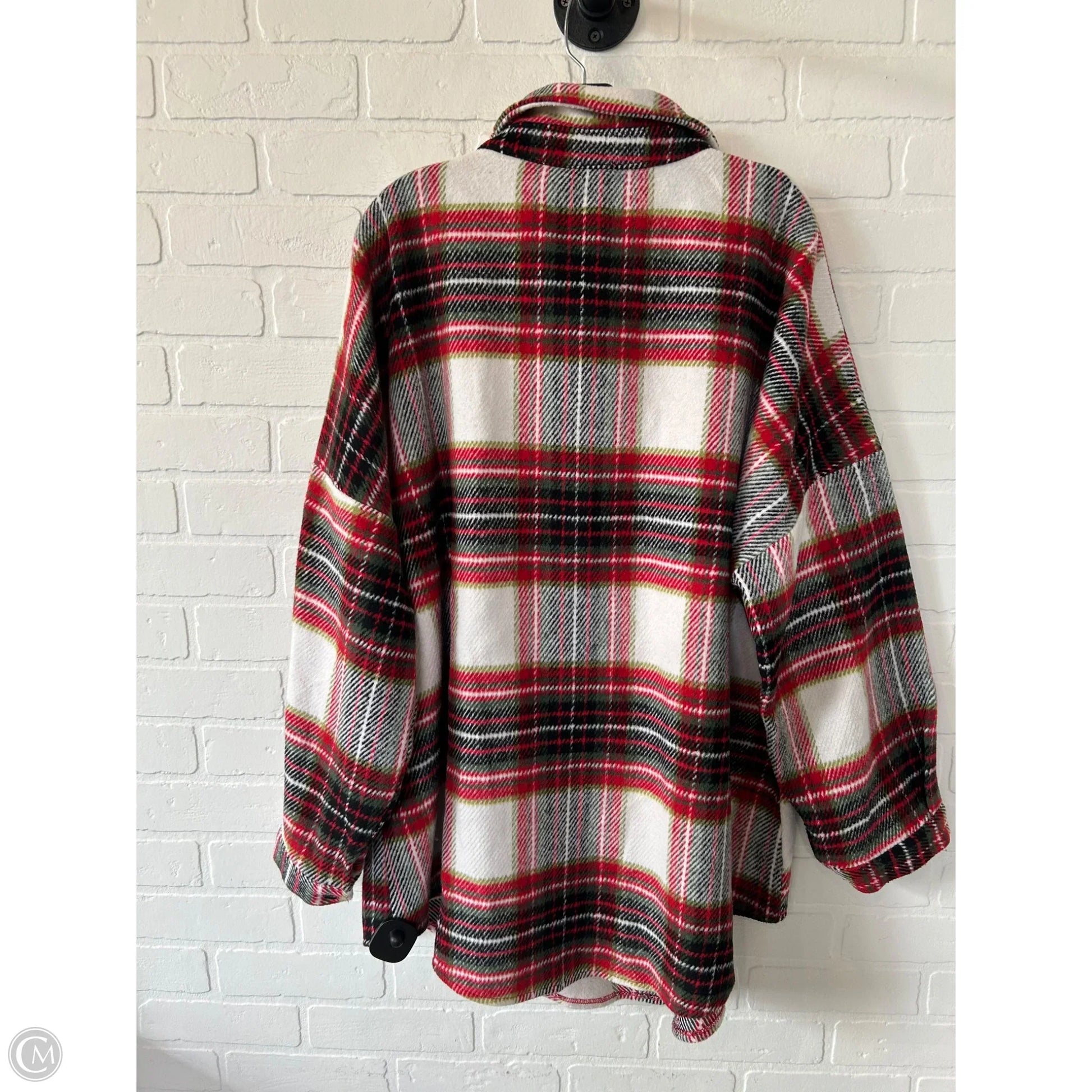 Jacket Shirt By Davi & Dani In Red & White, Size: 1x