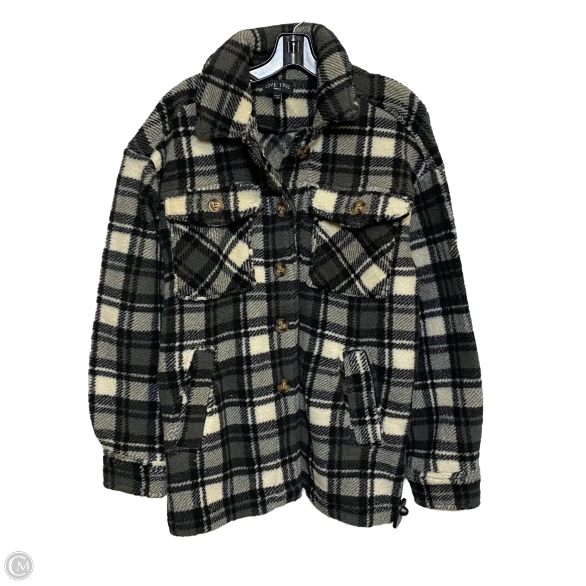 Jacket Shirt By Love Tree In Plaid Pattern, Size: S