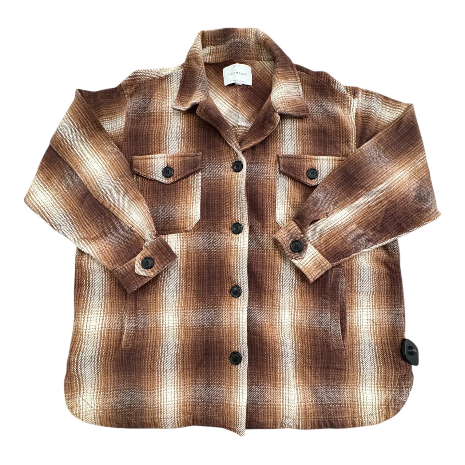 Jacket Shirt By Lucky Brand In Brown, Size:L