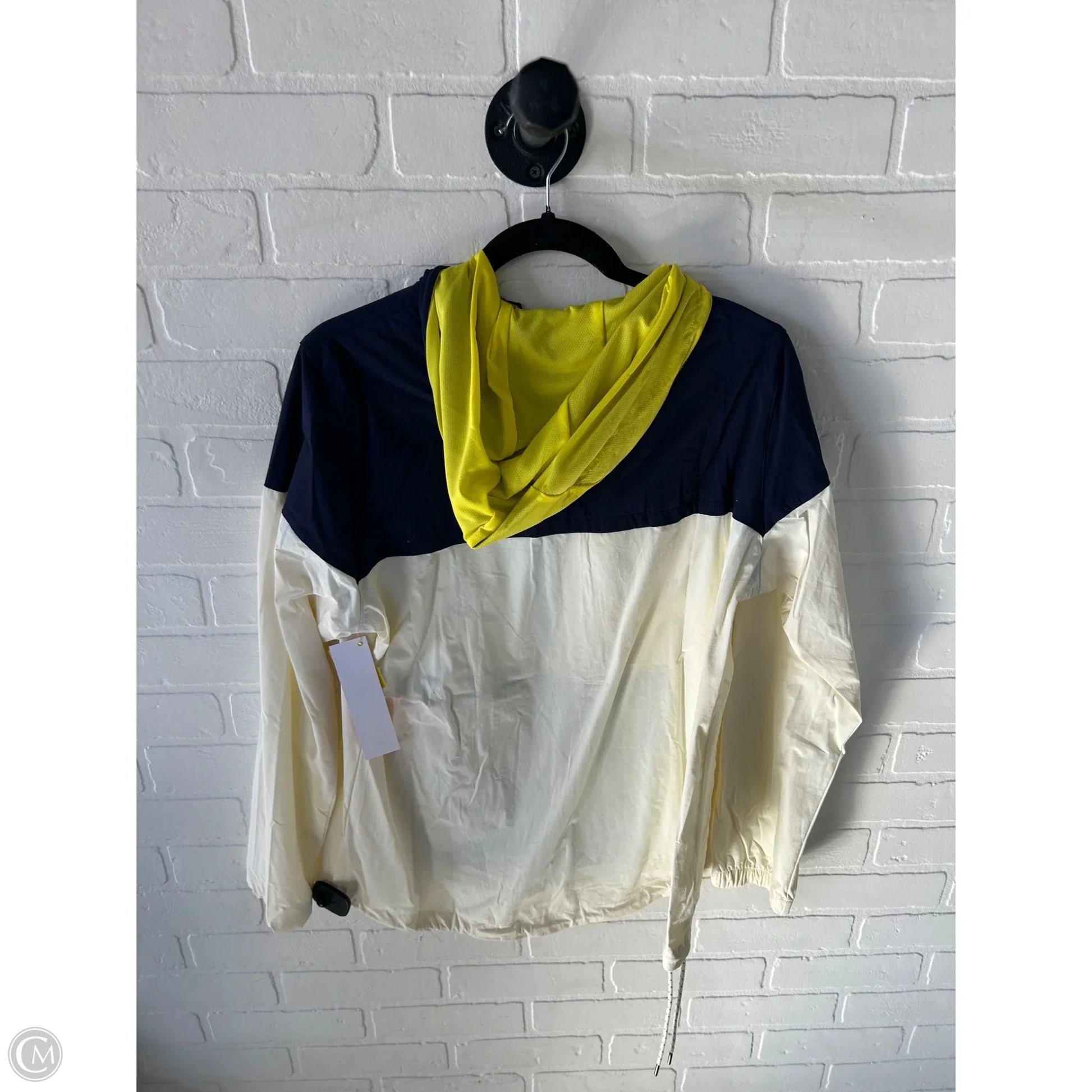Jacket Windbreaker By New Balance In Blue & Cream, Size: L